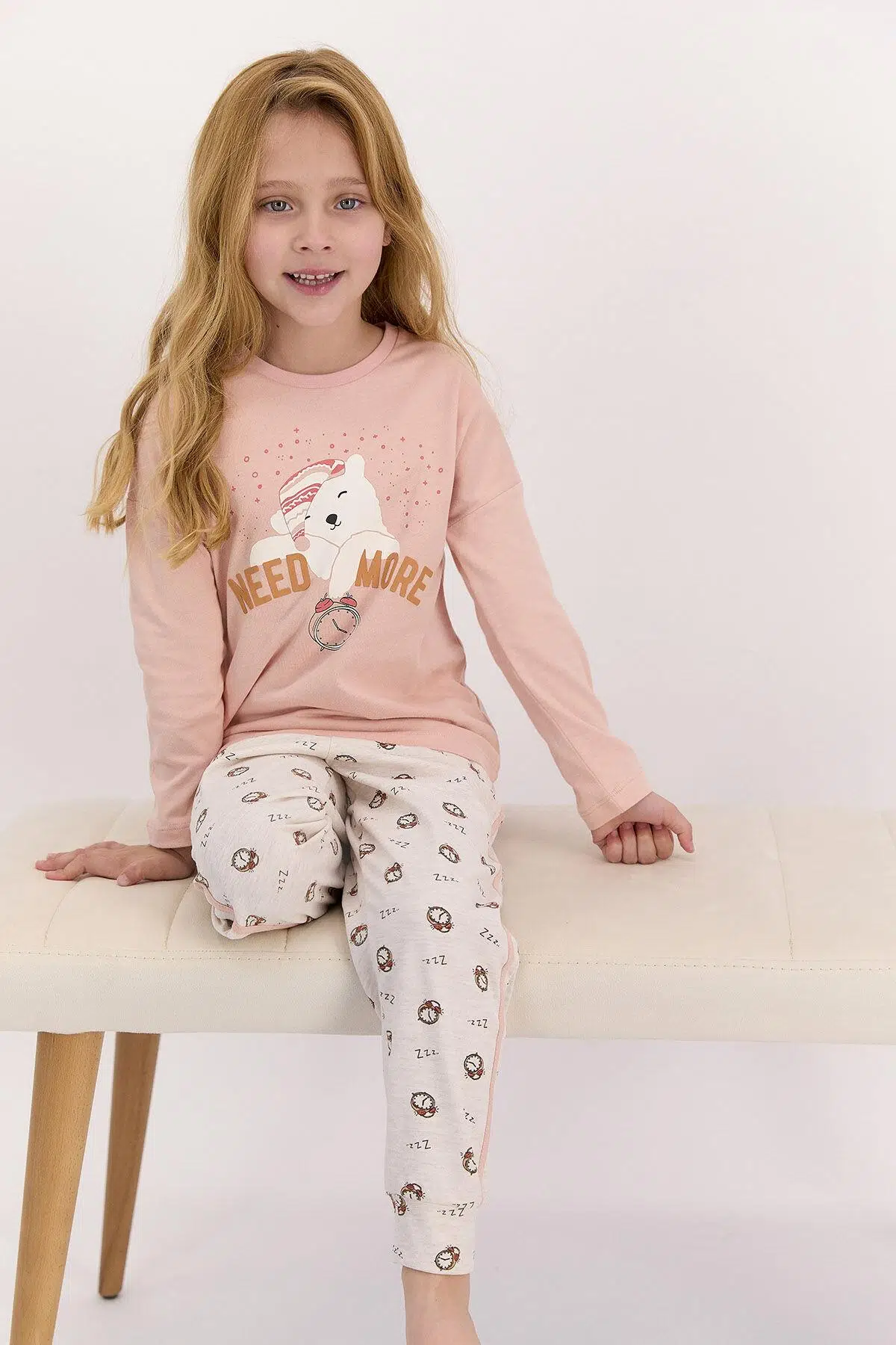 Arnetta 1433 Garson Need More Mocha Kız Çocuk Uzun Kol Pijama Takımı
