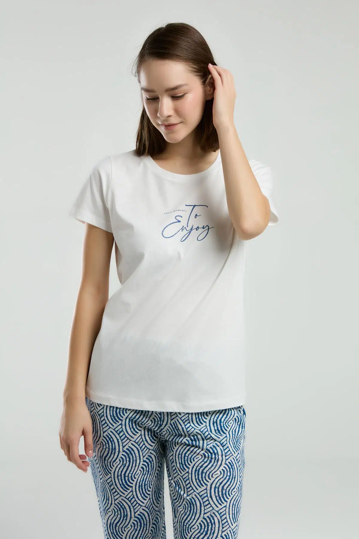 Arnetta 3305 Great Moments To Enjoy Kadın Beyaz Kısa Kol Pijama Takım