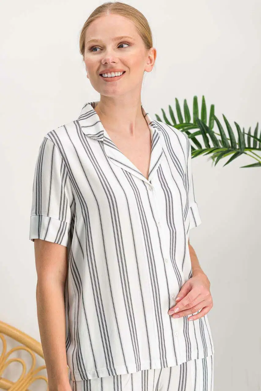 | Etiketler | Arnetta 718 Lines Krem Düğmeli Kadın Gömlek Pijama Takımı |