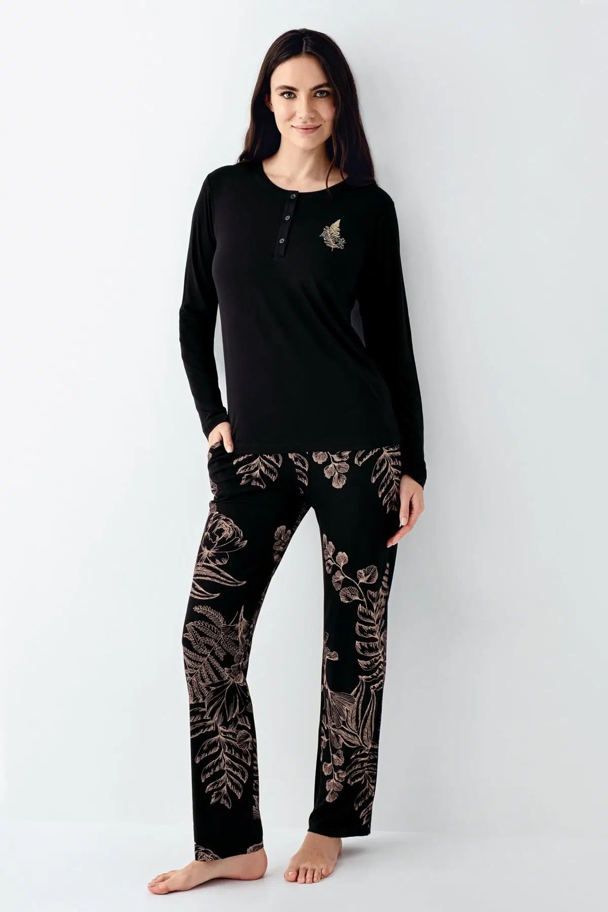Arnetta Kadın Modal Pamuklu 4 Mevsimlik Desenli Uzun Kollu Pijama Takım