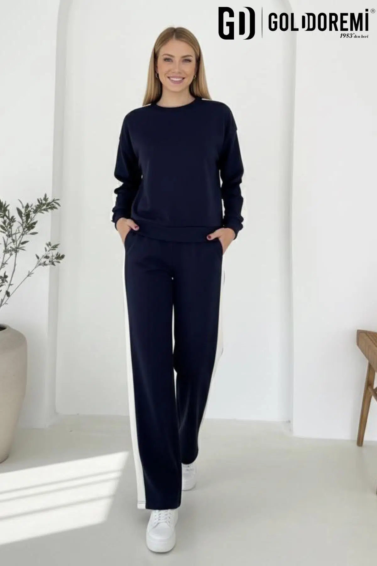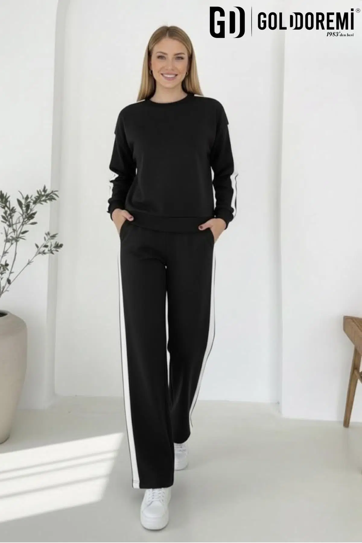 Gd Goldoremi 040 Modal Kadın Şerit Detaylı Kolları Manşetli Bol Kesim Eşofman Takım