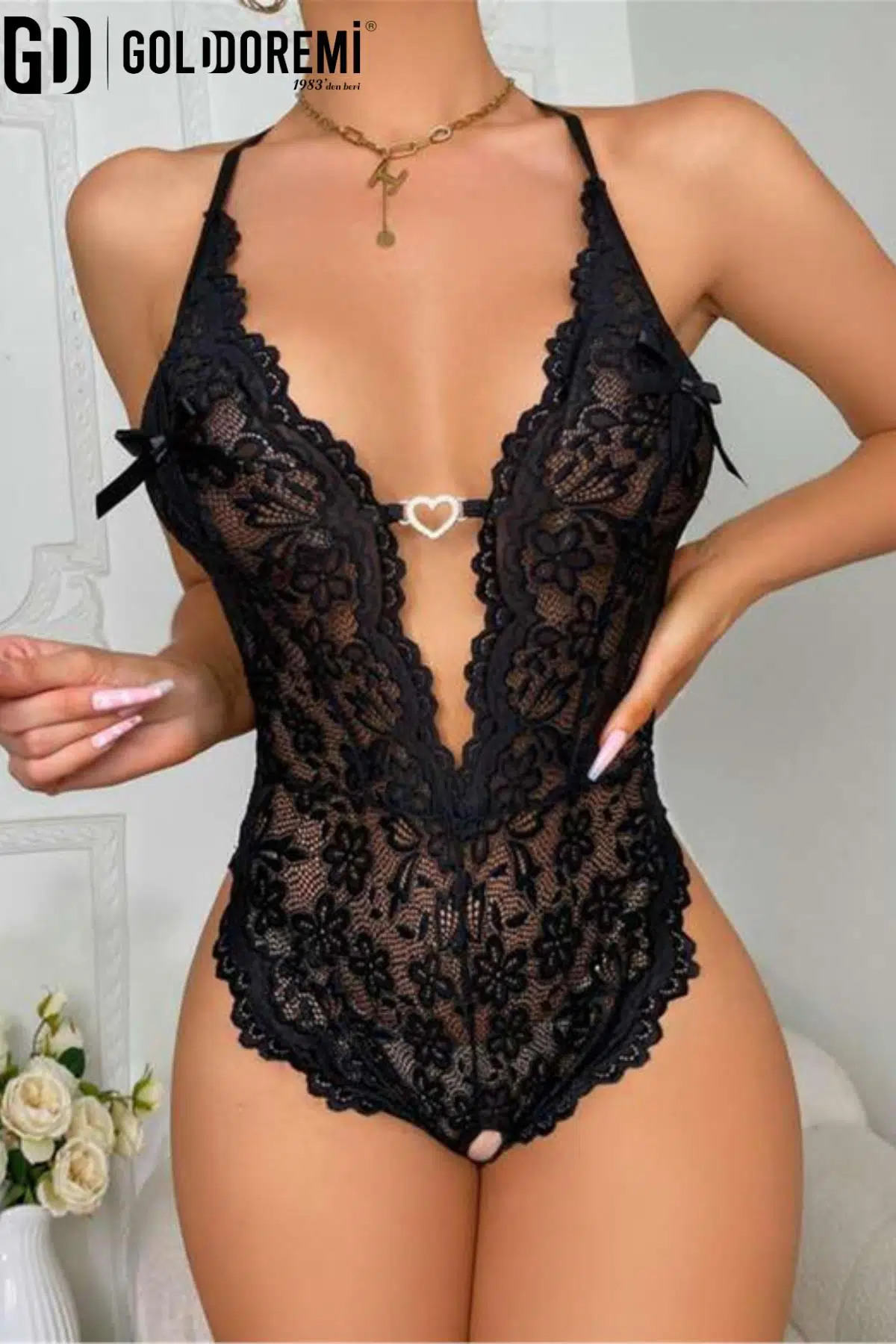 | Etiketler | Gd Goldoremi Kadın Dantel Güpürlü Kalp Taş Detaylı Fantezi Gecelik |