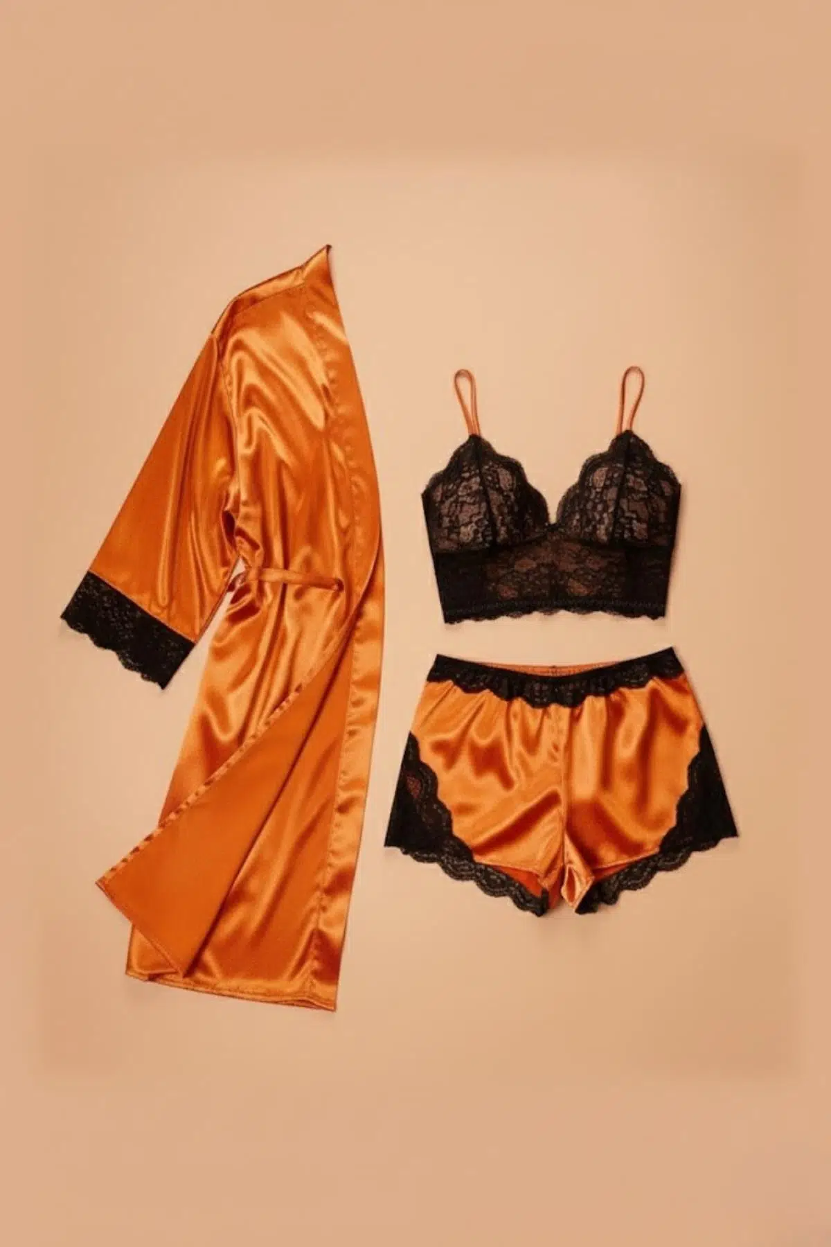 Gd Goldoremi Kadın Sabahlıklı Büstiyerli Şortlu Kimono 3'lü Pijama Takım