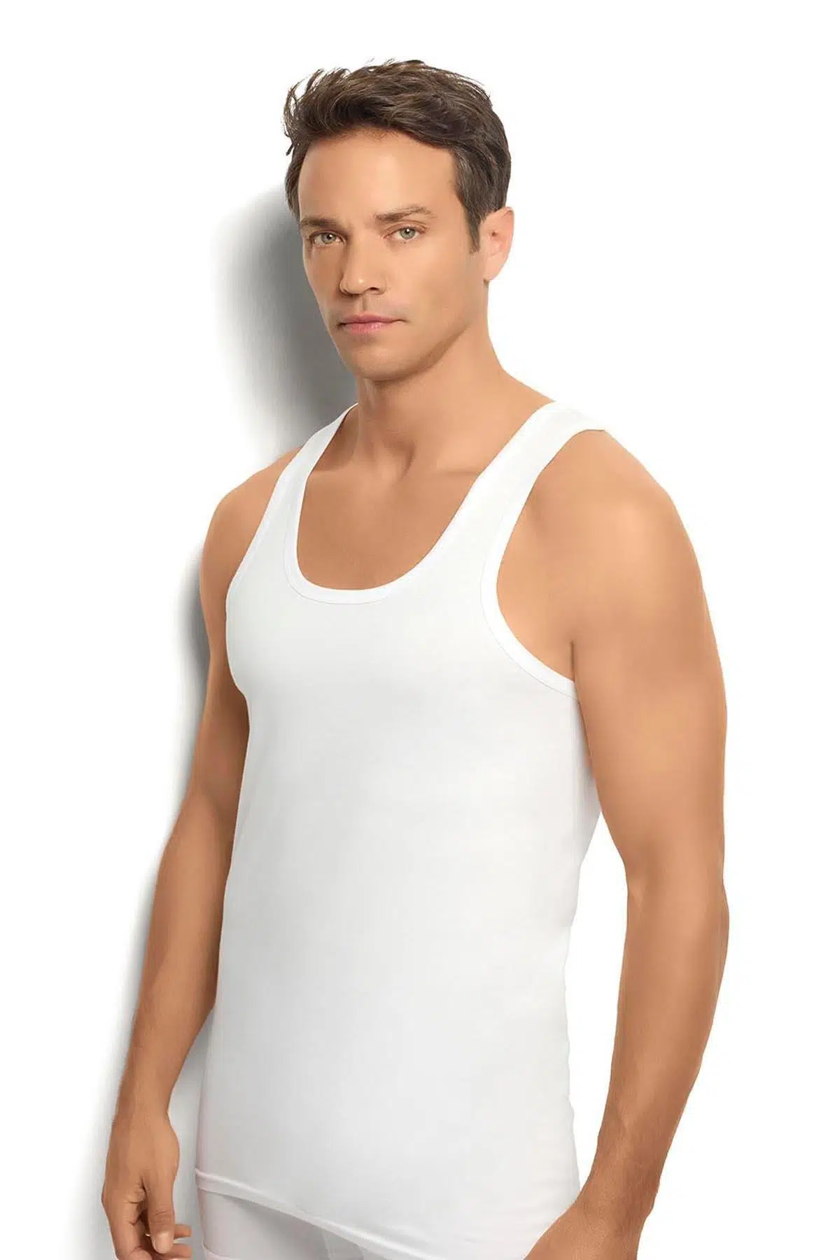Jiber 106 1 Adet Erkek Pamuklu Arkası Çapraz Rambo Beyaz Atlet