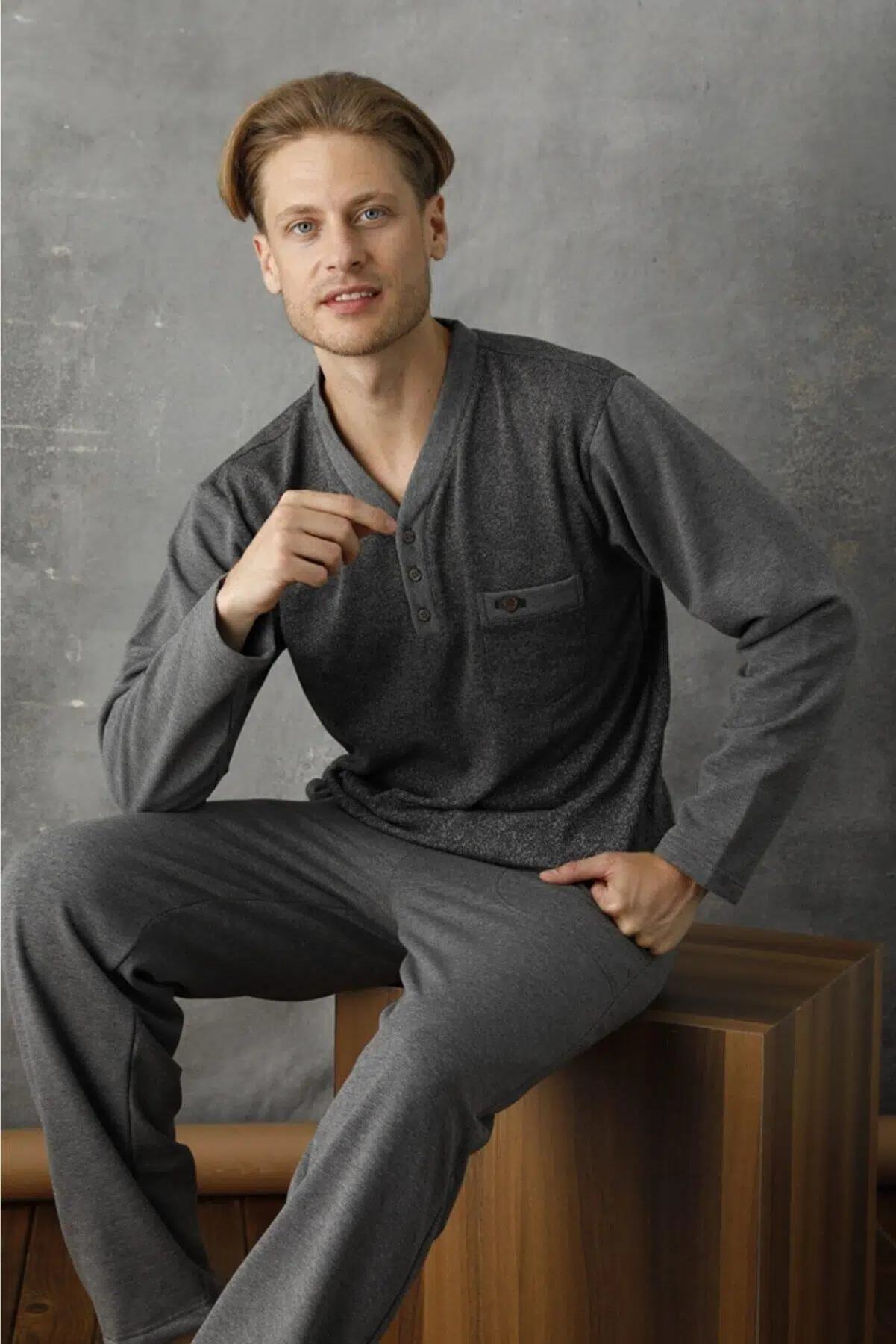 Kly 7033 Erkek Jivago Yaka Pijama Takım