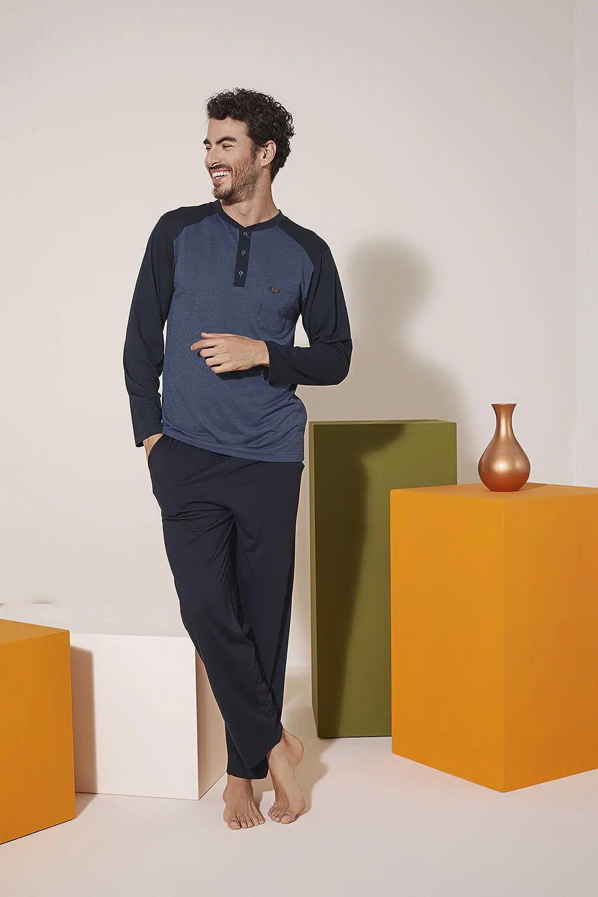 Kly 9206 Erkek Midi Yaka Omuz Parçalı Pijama Takım