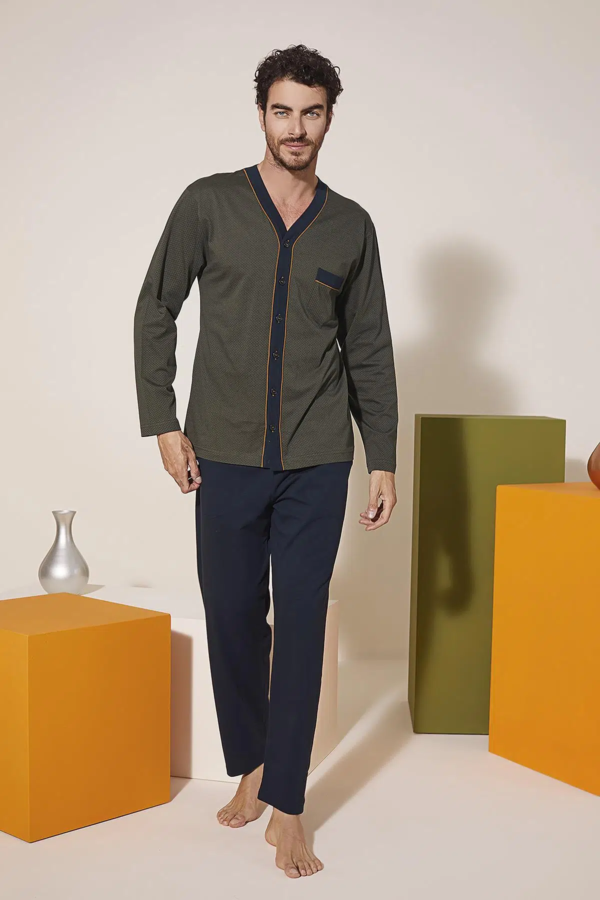 KLY 9217 Erkek V Yaka Boydan Düğmeli Pijama Takım