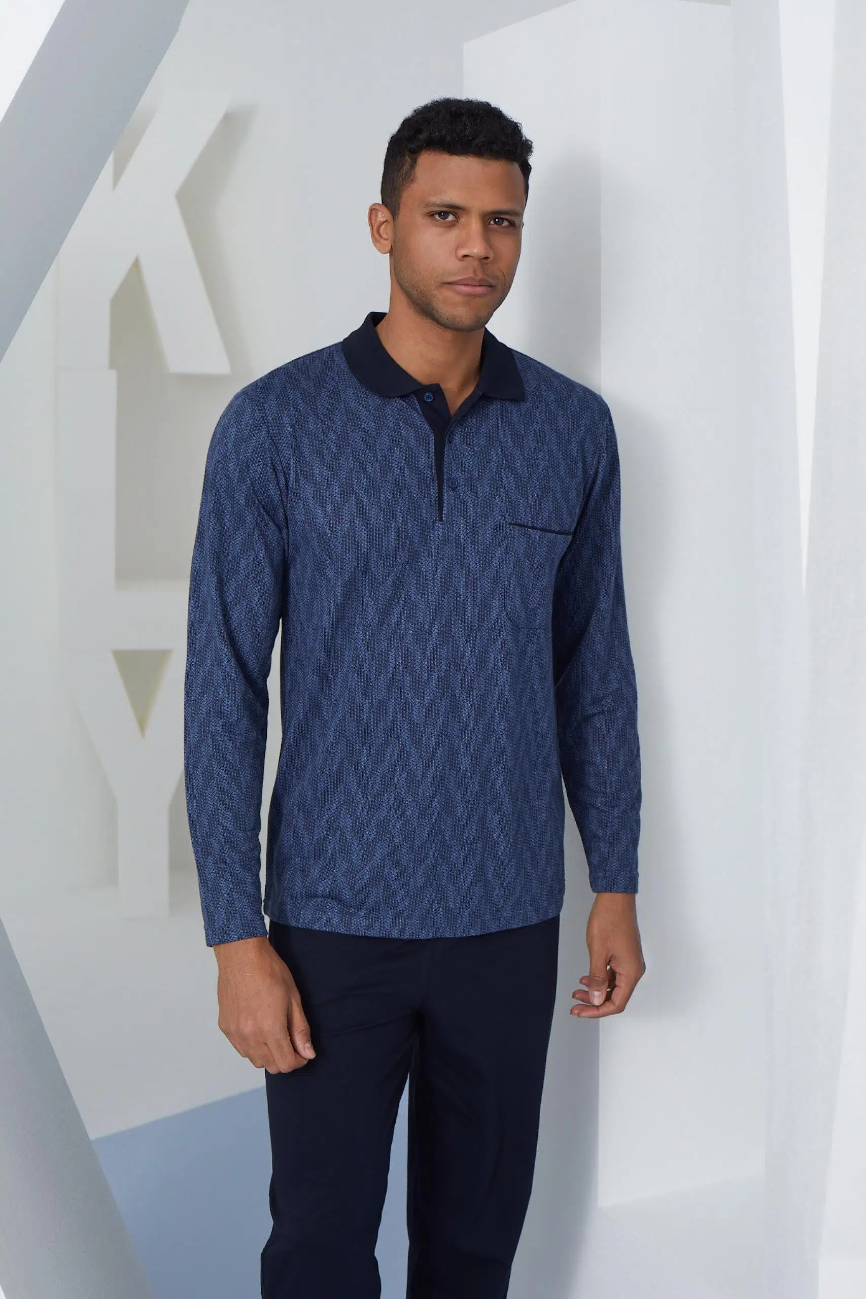 Kly 9247 Erkek Polo Yaka Düğmeli Uzun Kol Pijama Takım