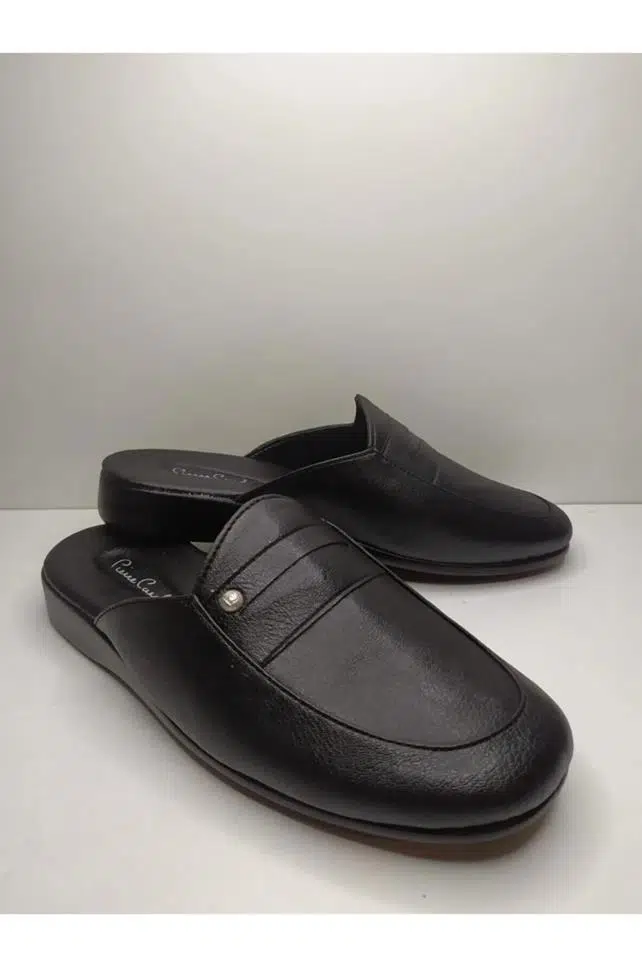 Pierre Cardin 288-1 Erkek Siyah Damat Çeyiz Armalı Düz Deri Terlik
