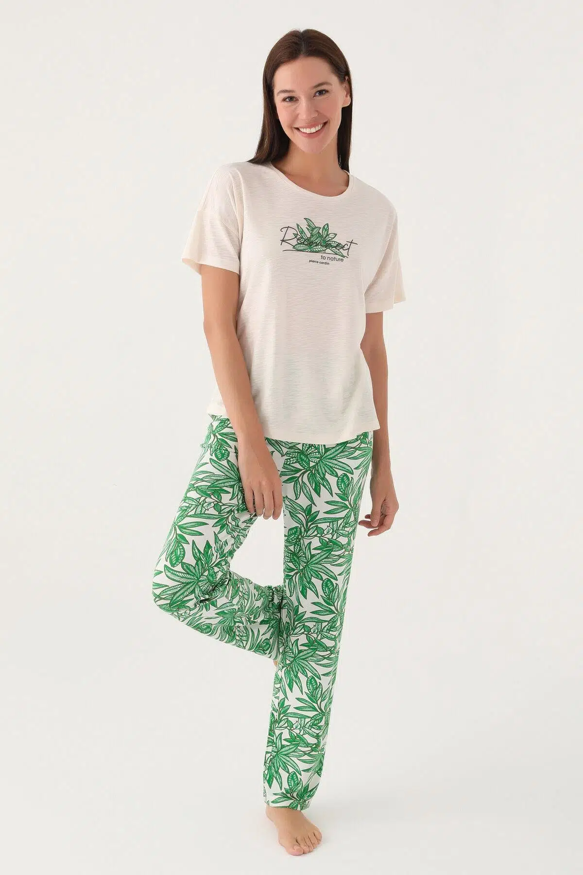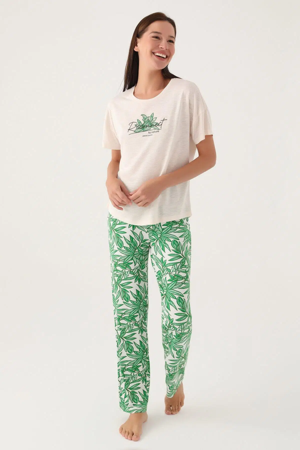 Pierre Cardin Nature Bej Kadın Pijama Takımı Rahatlık Ve Şıklığı Bir Araya Getirerek Günün Her Anında Mükemmel Bir Seçenek Sunuyor. Yumuşak Ve Hafif Kumaşı Cilde Nazik Bir Dokunuş Sağlayarak Kullanıcıya Gün Boyu Konfor Sunuyor. Takımın Rahat Kesimi Özgürce Hareket Etme İmkanı Tanırken Doğal Hareketlilik Ve Esneklik Sağlayarak Günün Her Anında Konforu Garanti Ediyor. Yüksek Kaliteli Malzemeler Ve Özenle Seçilmiş Detaylar Pierre Cardin Nature Bej Kadın Pijama Takımını Eşsiz Kılıyor. Pierre Cardin'İn Marka İmzası Ürüne Lüks Bir Hava Katarken Şıklığı Ve Rahatlığı Bir Araya Getiren Bu Takım Hem Evde Hem De Dışarıda Kullanıma Uygun. Doğal Yaşam Tarzını Benimseyen Kadınlar İçin İdeal Bir Seçenek.