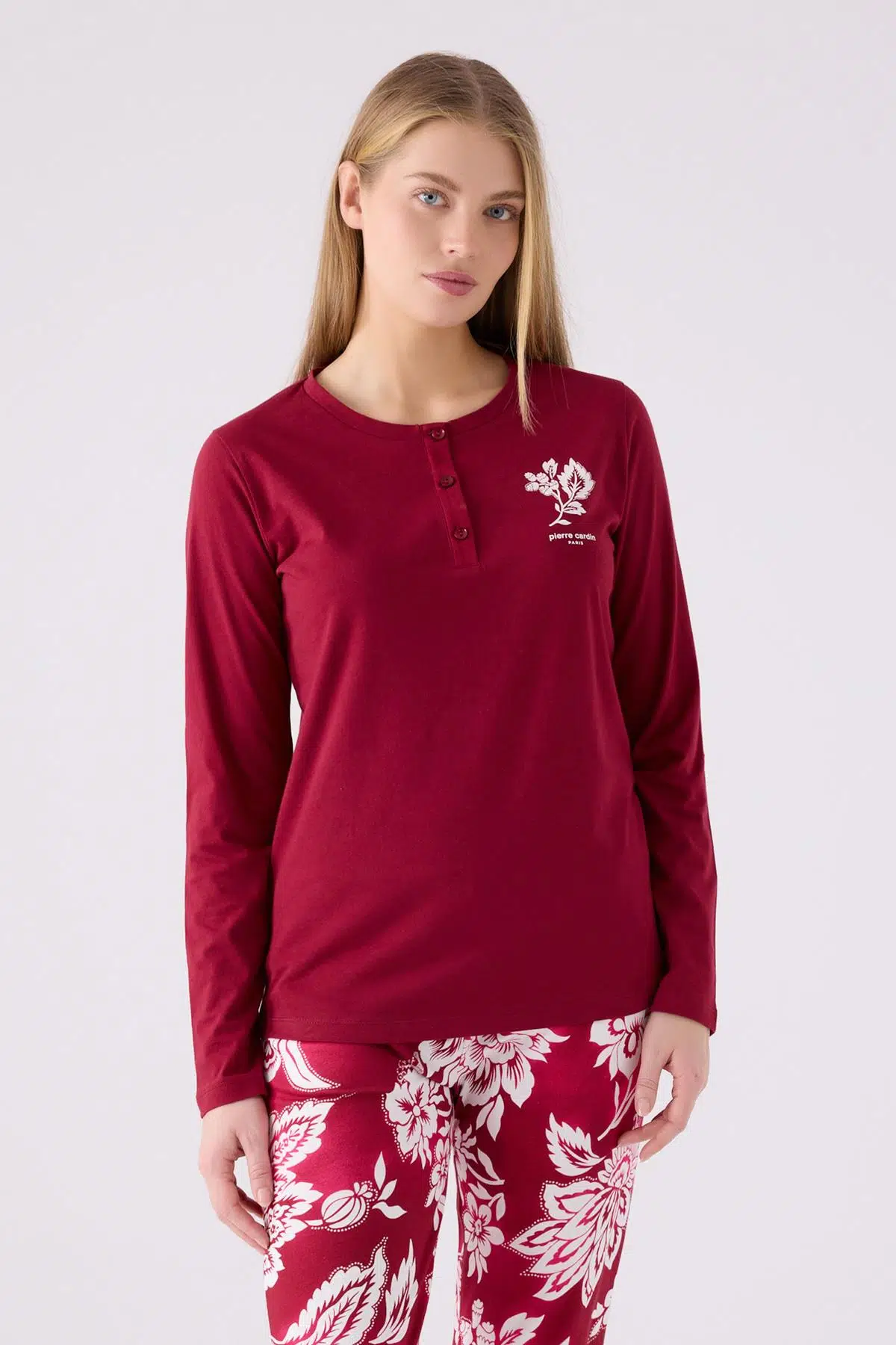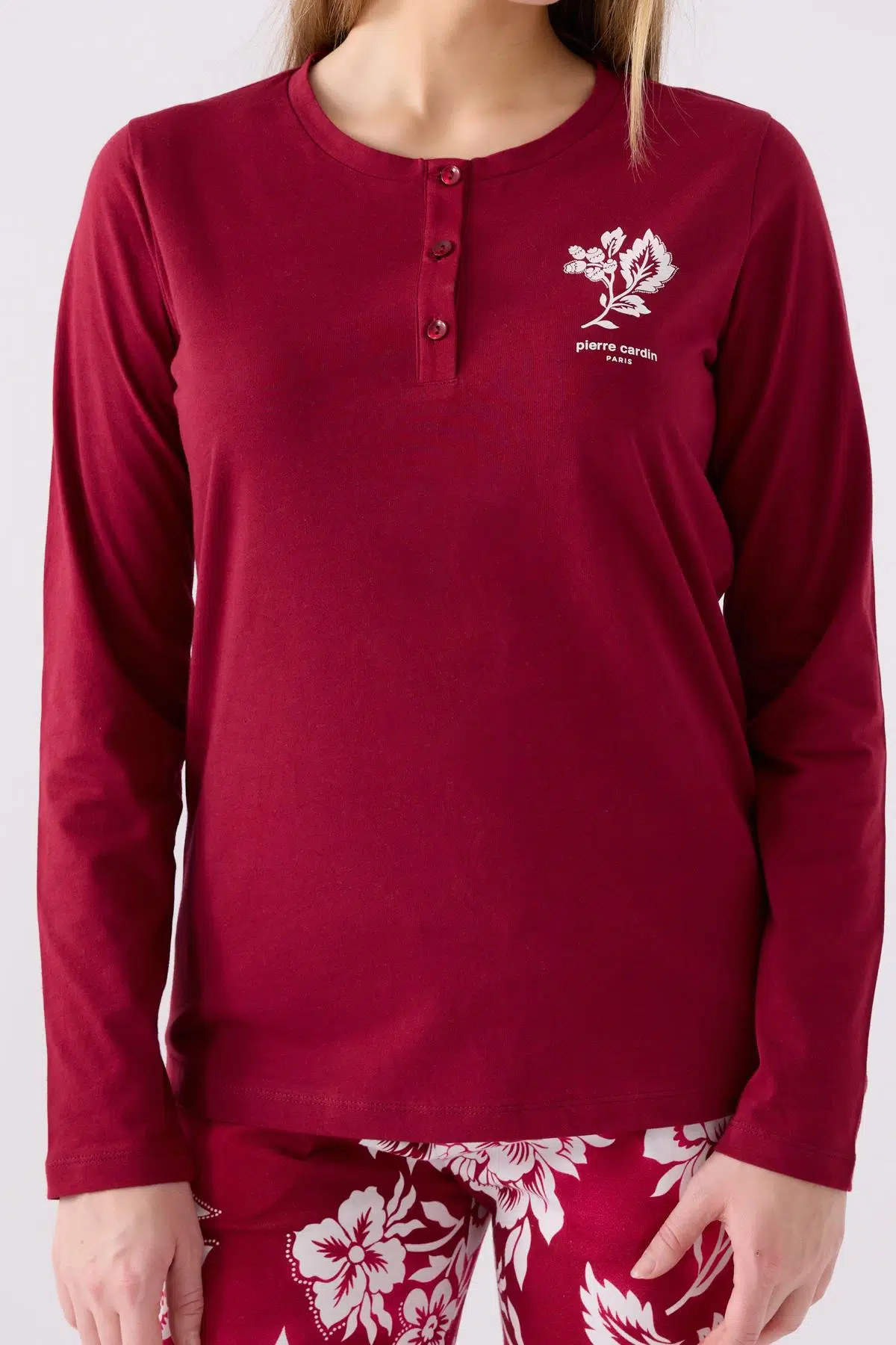 Pierre Cardin 8866 Kadın Düğmeli Vişne Uzun Kol Pijama Takım