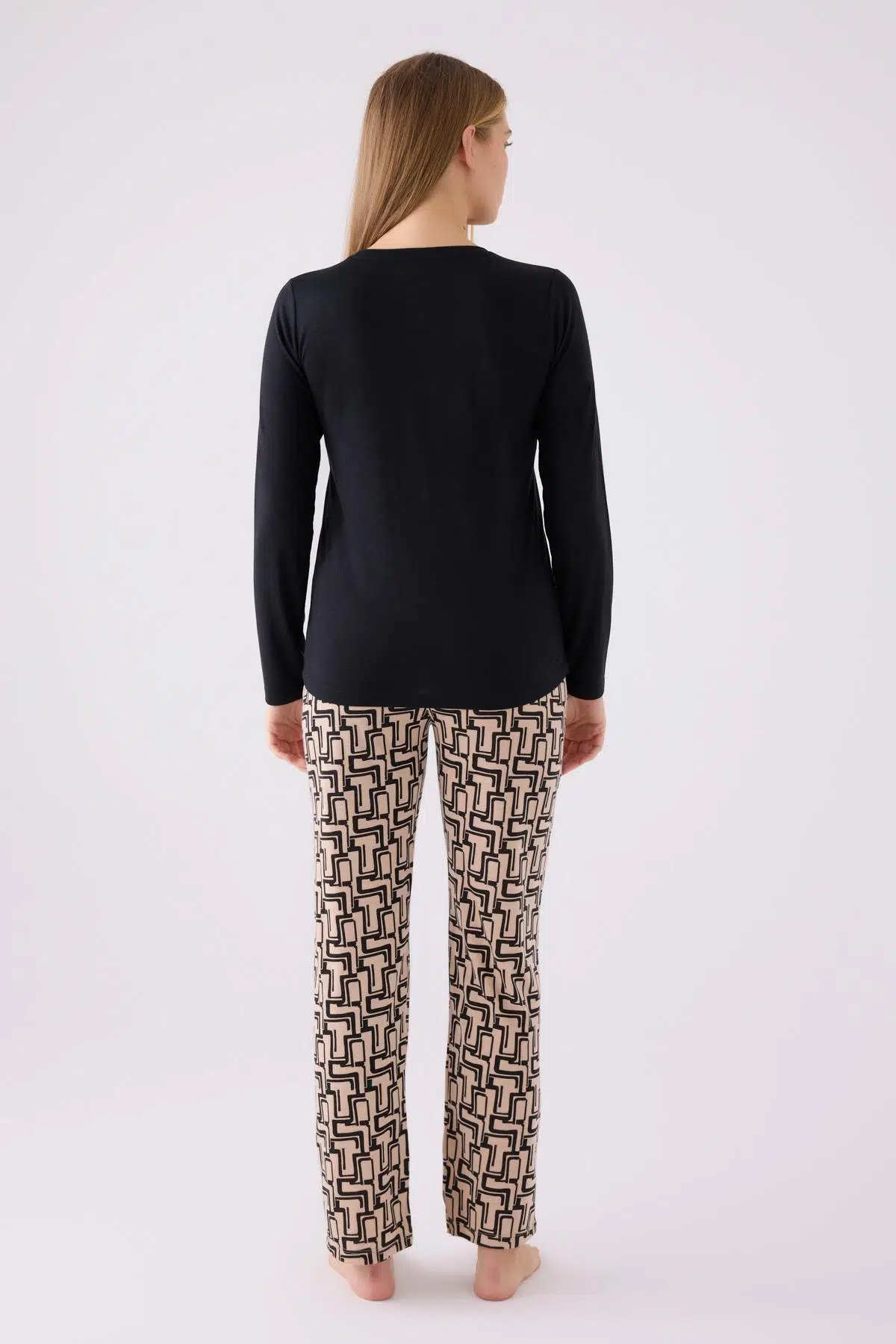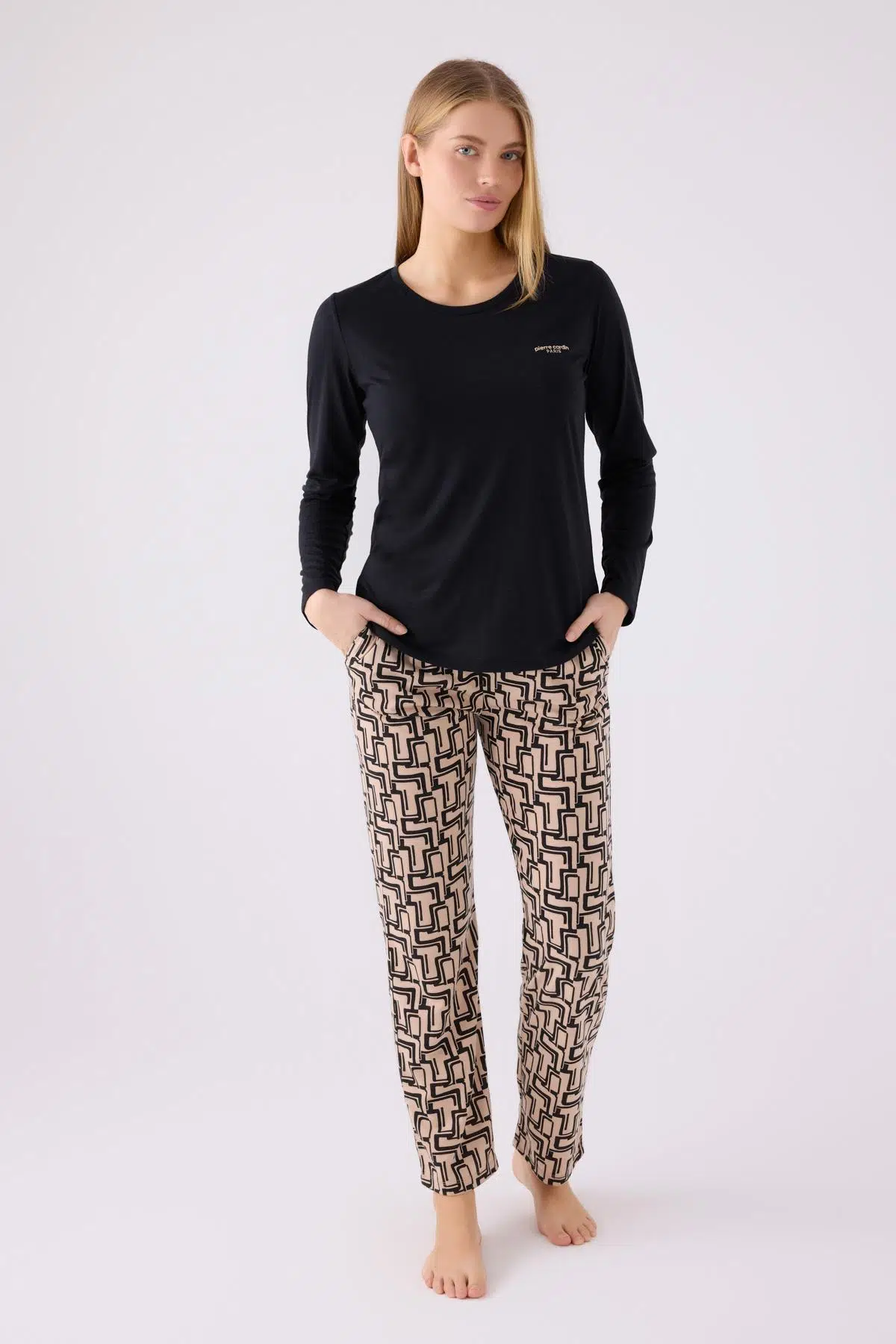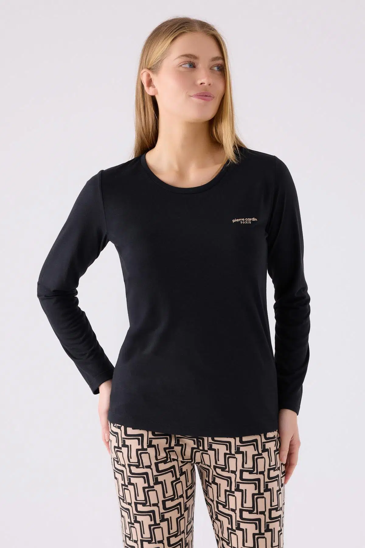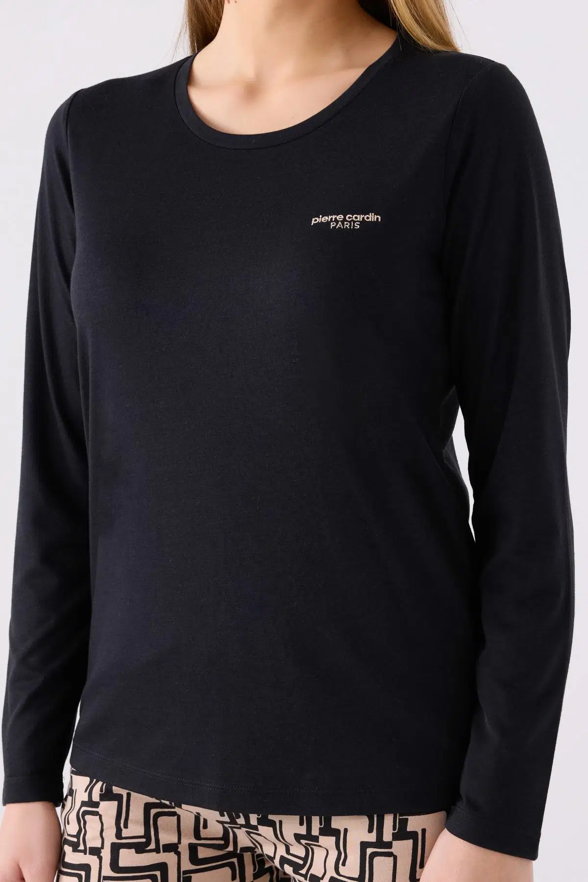 Pierre Cardin 8891 Paris Kadın Yuvarlak Yaka Siyah Uzun Kol Pijama Takım