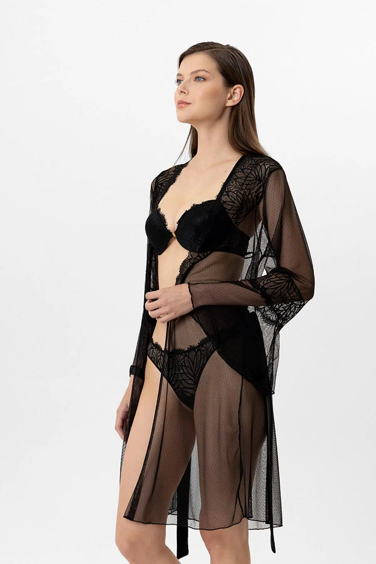 Pierre Cardin Lingerie 4887 Kadın Milan Push Up Dantelli Bağcıklı 3'lü Sabahlıklı Sütyen Takım