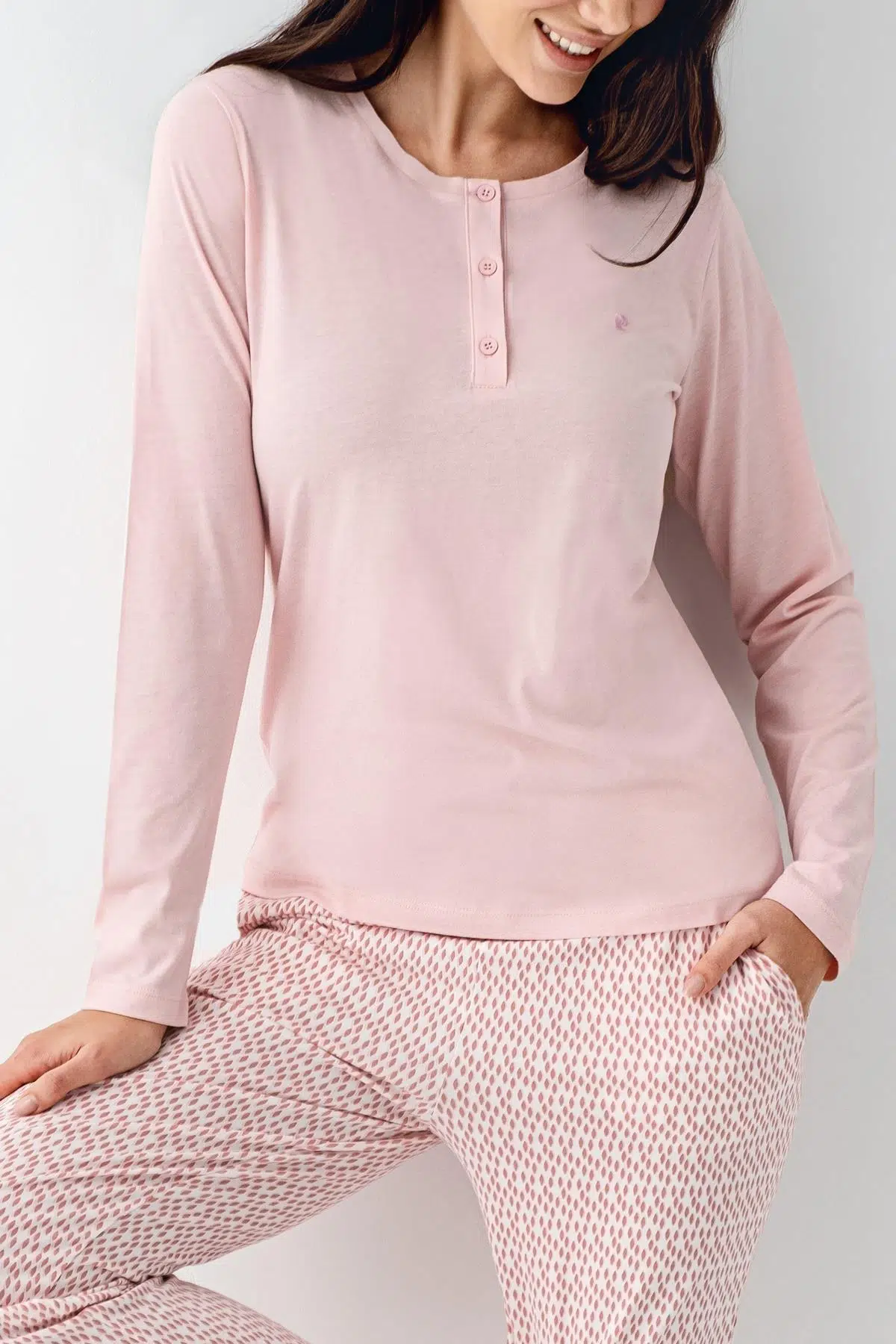Pierre Cardin Paris Kadın Pembe Modal Pamuklu Uzun Kollu Rahat Pijama Takım