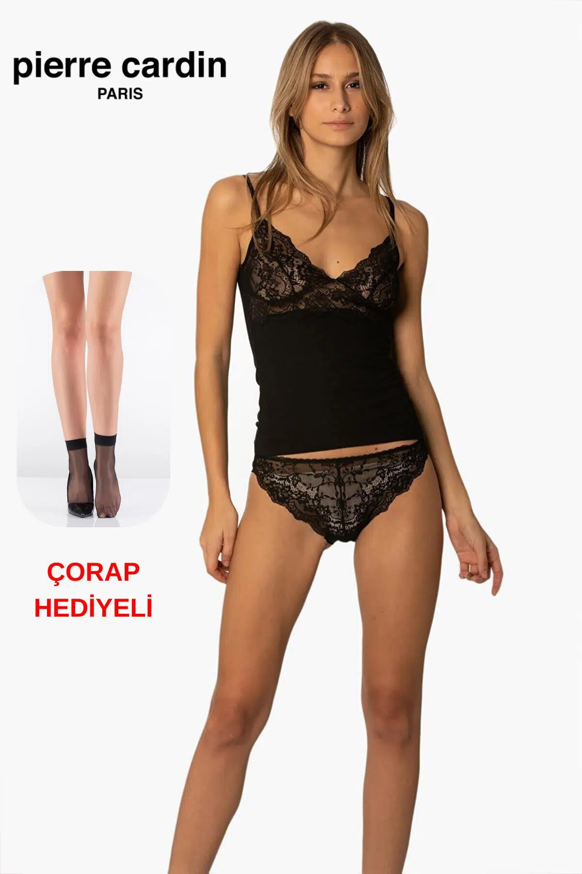 Pierre Cardin 315 Kadın Dantelli Penye Kaşkorse Atlet Külot Takım