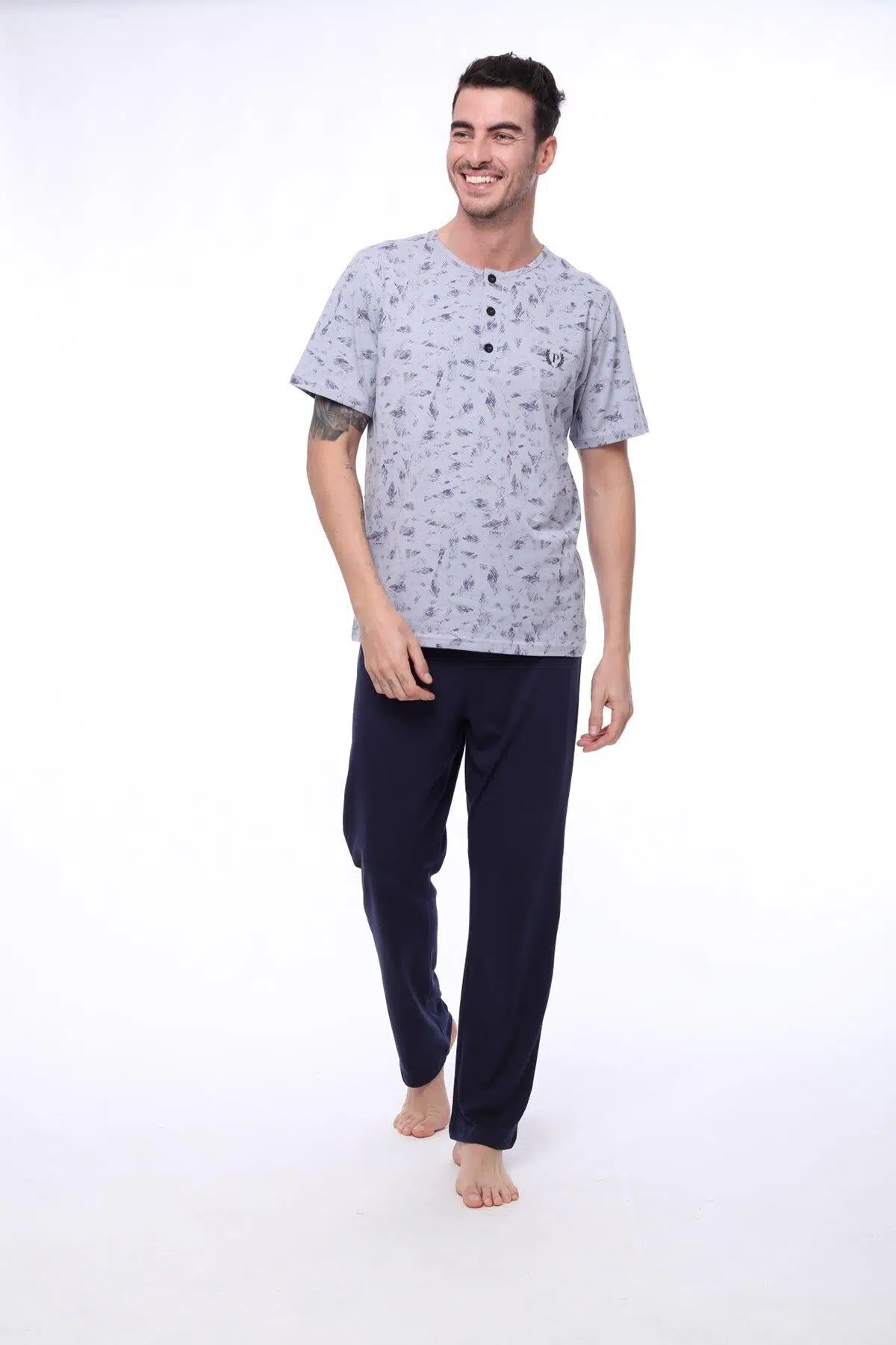 Pijadore 1402 Erkek Yuvarlak Yaka Düğmeli Kısa Kollu Pijama Takım