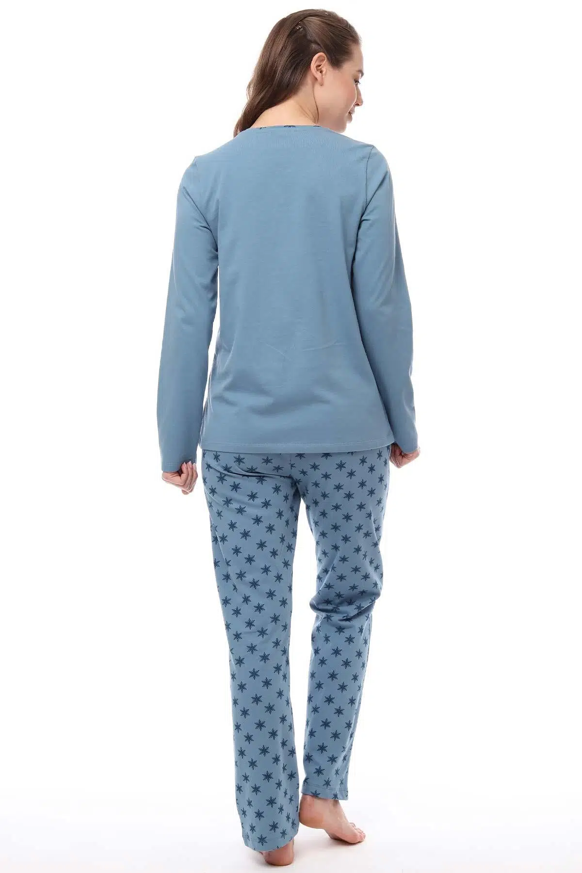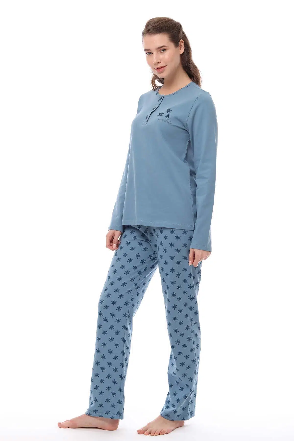 Pijadore 1536 Kadın Üç Düğmeli Pijama Takımı Uzun Kol Büyük Beden