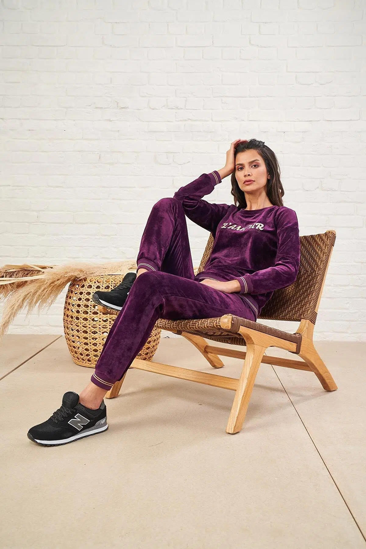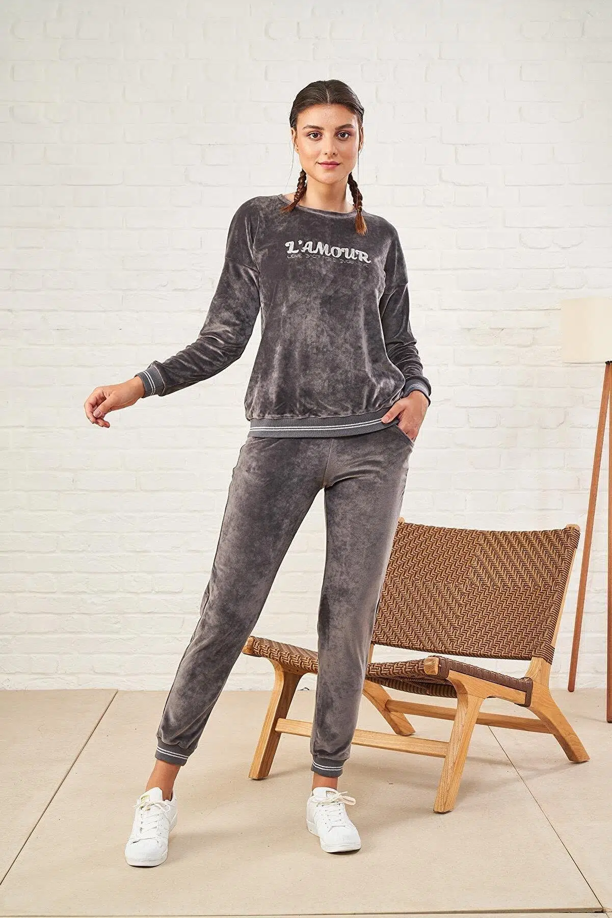 PJS 22473 Kadın O Yaka Kadife Eşofman Takım