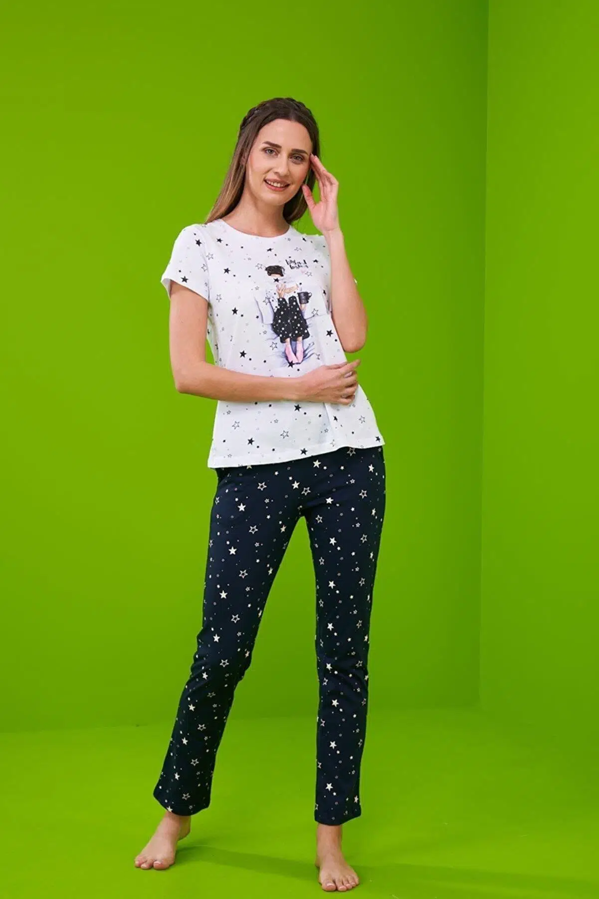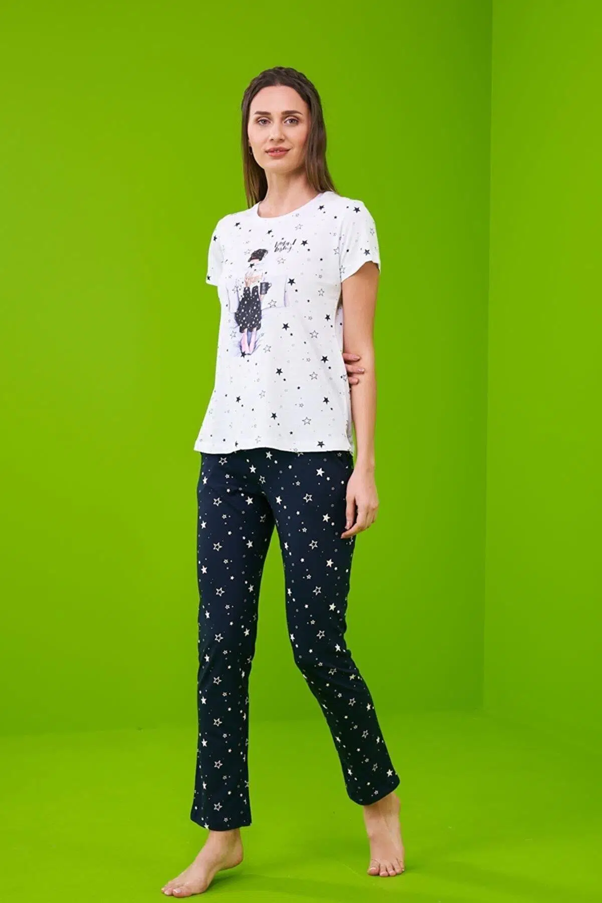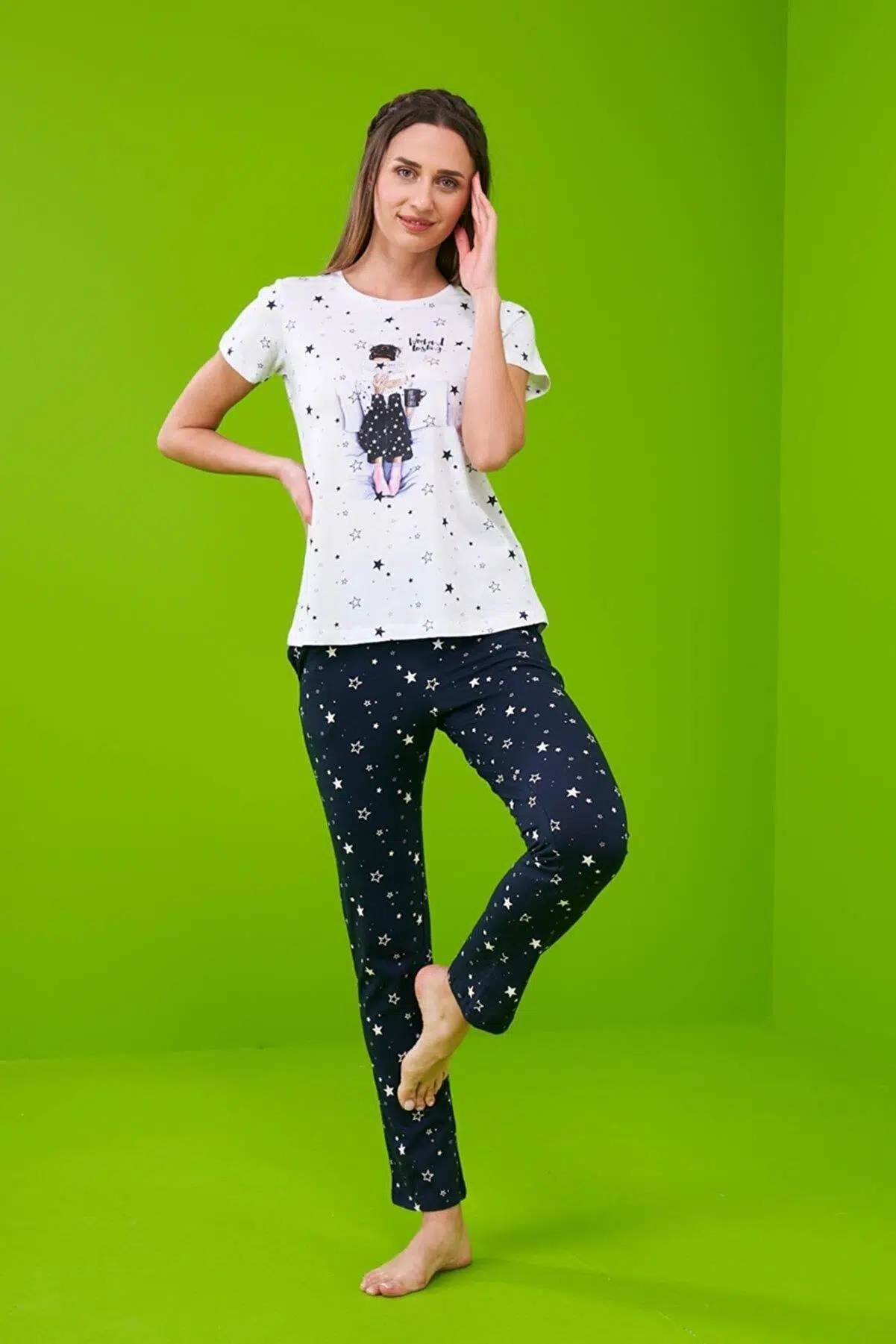Pjs 23102 Kadın Yıldız Desenli Pijama Takım