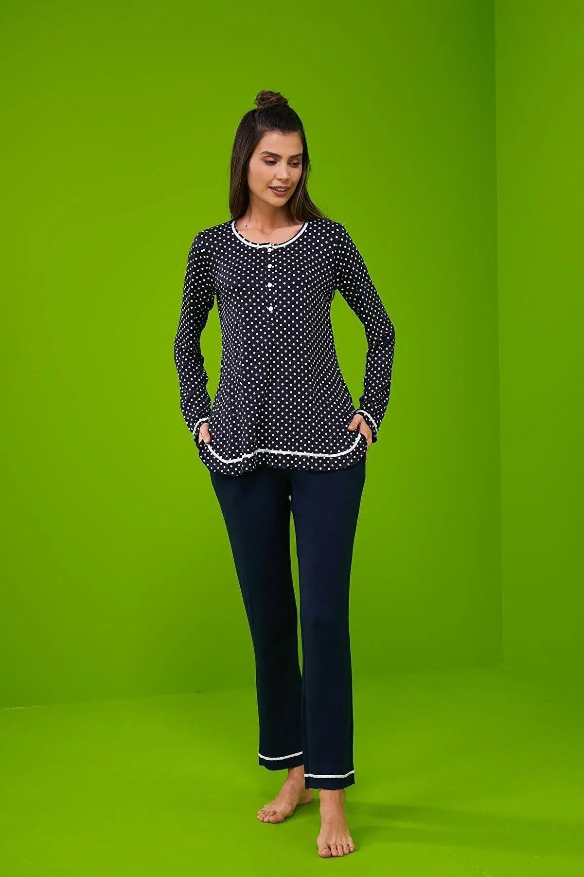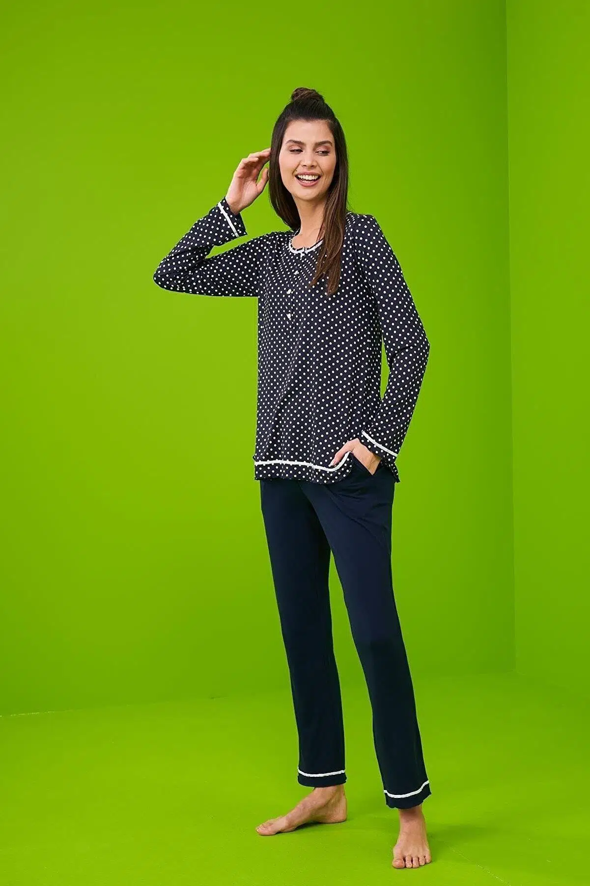 Pjs 23197 Kadın Patlı Uzun Kollu Pijama Takım