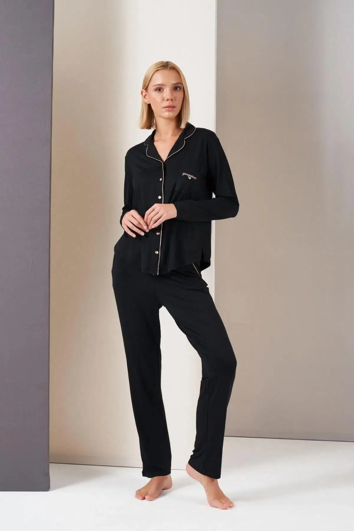 | Etiketler | Pjs 26035 Gorgeous Kadın Düğmeli Biyeli Cepli Uzun Kol Pijama Takım |