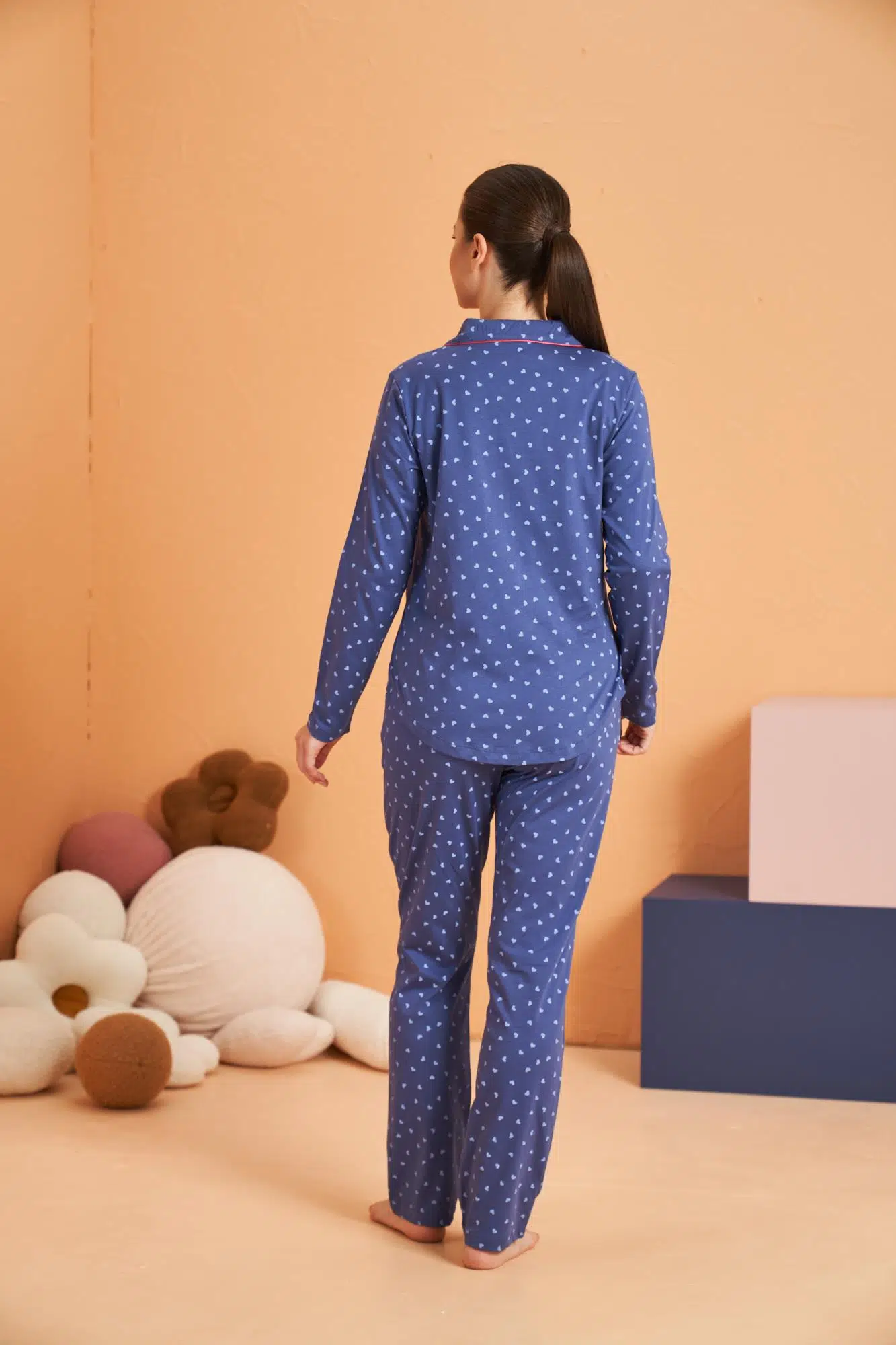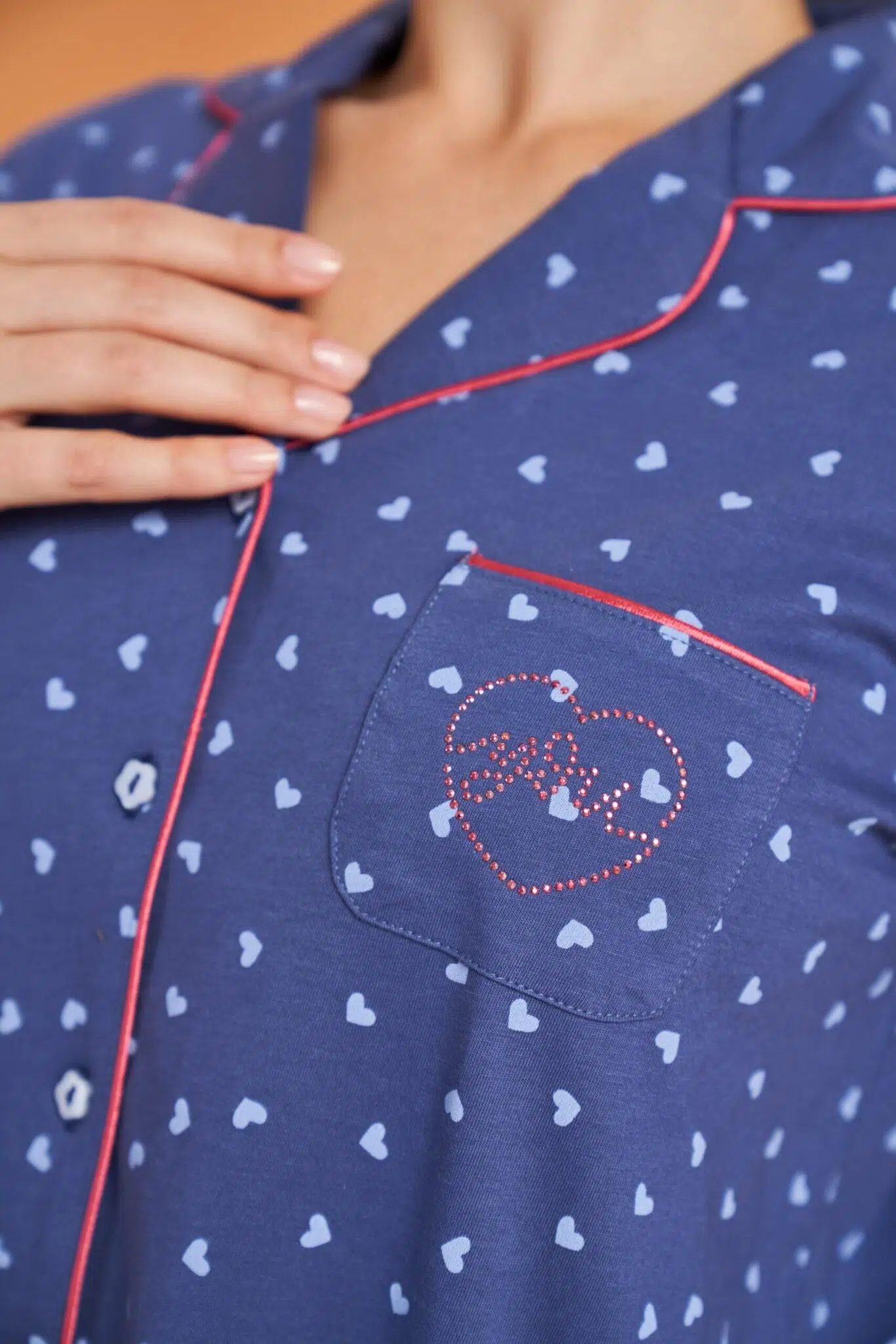 Pjs Kadın Anne-Kız Kalpli Önden Düğmeli Gömlek Yaka Uzun Kollu Pijama Takım