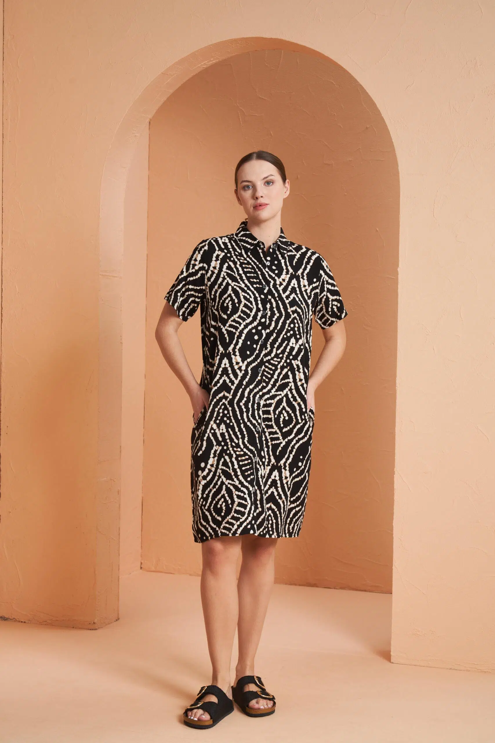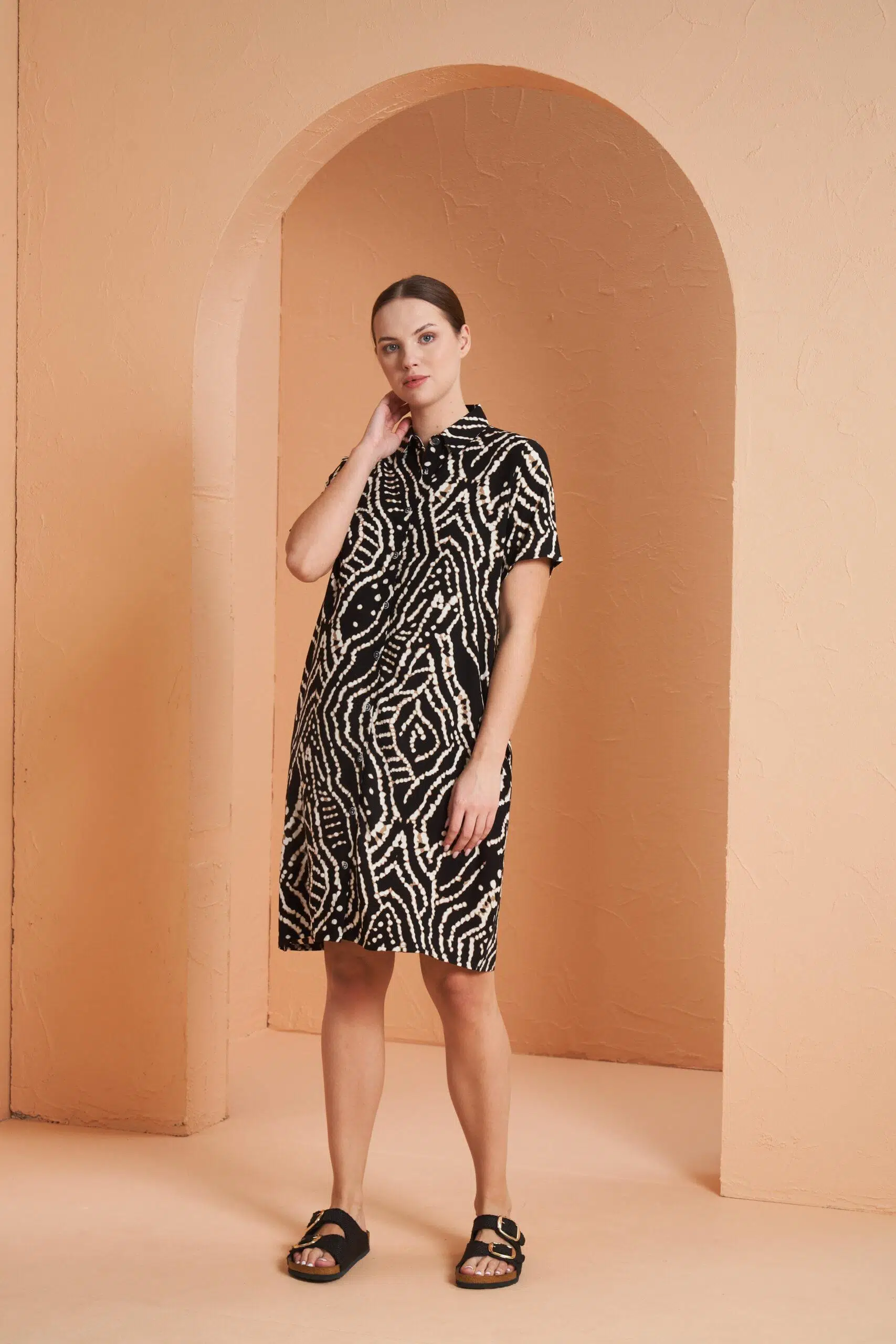 Pjs 27142 Kadın Gömlek Yaka Önden Düğmeli Kısa Kol Viskon Elbise