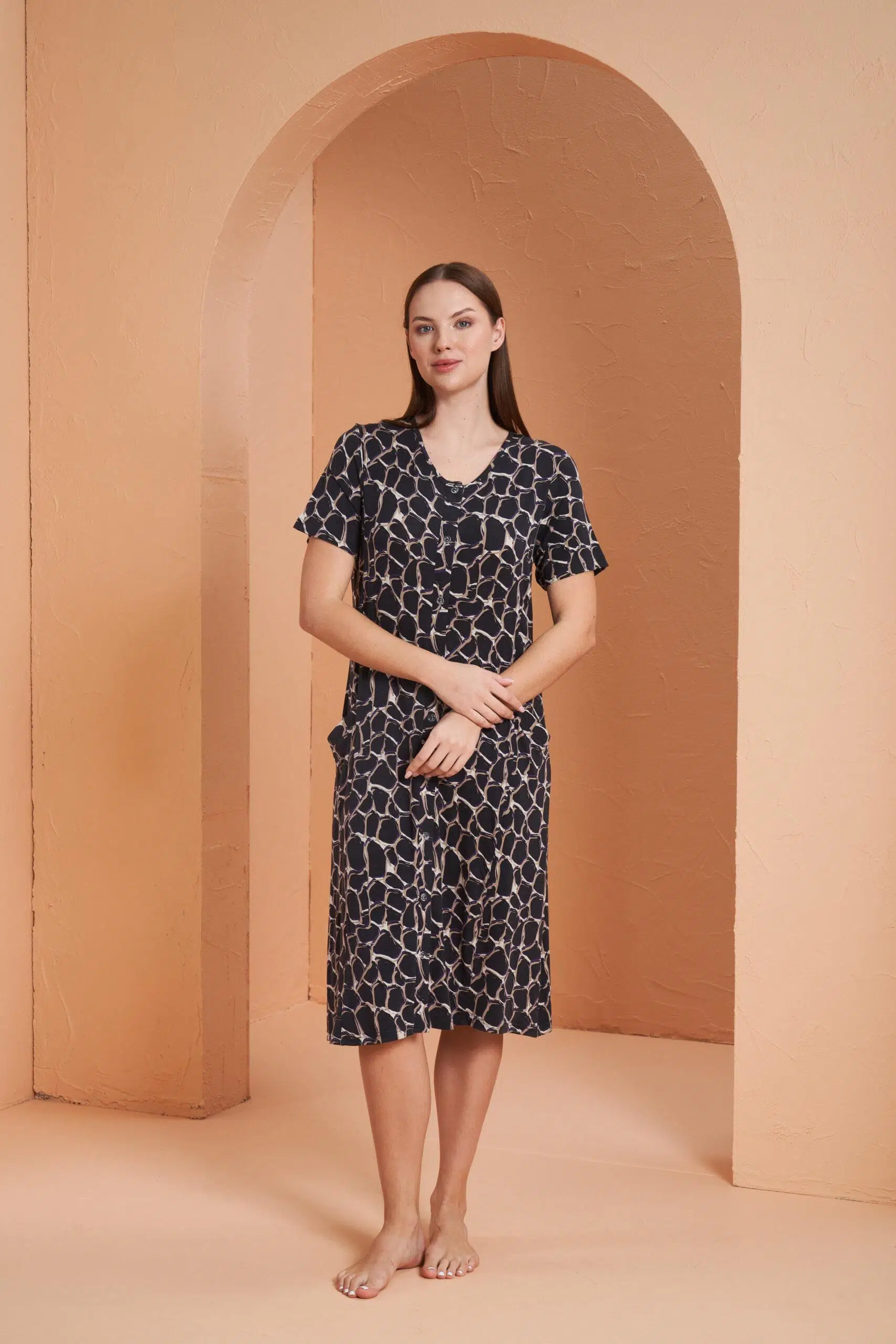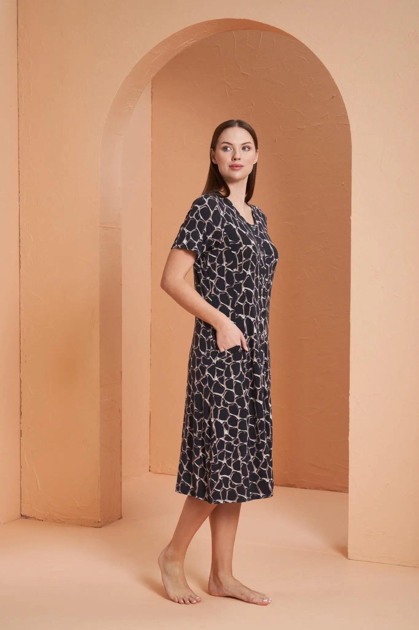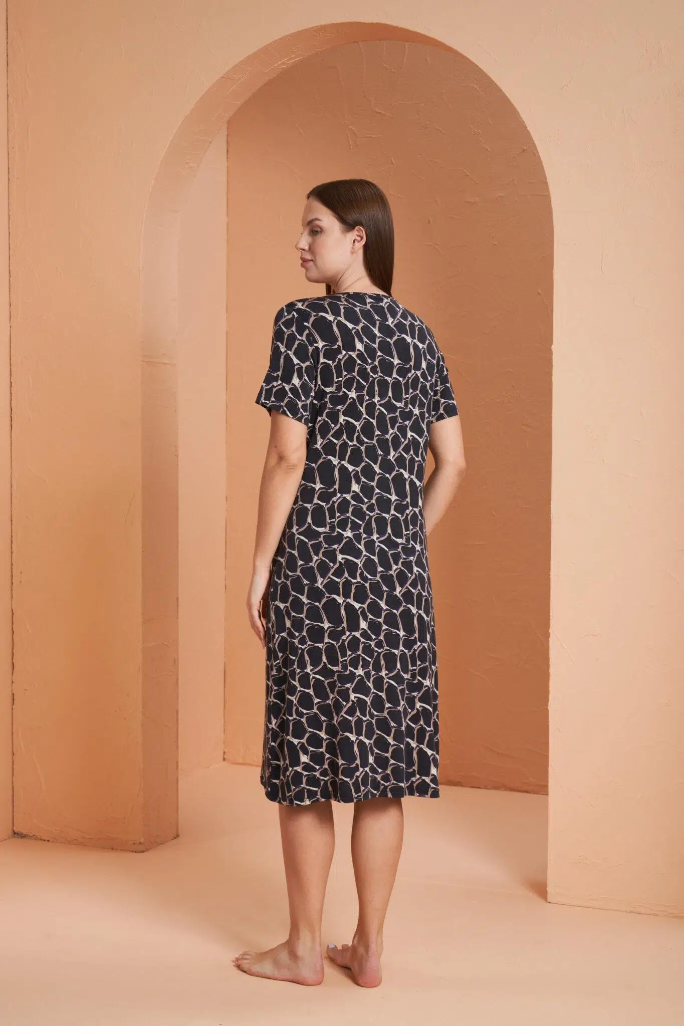 Pjs 27125 Kadın Viskon Boydan Düğmeli Kısa Kollu Desenli Elbise