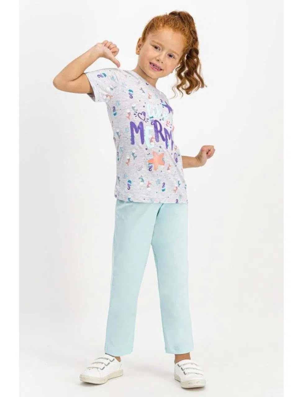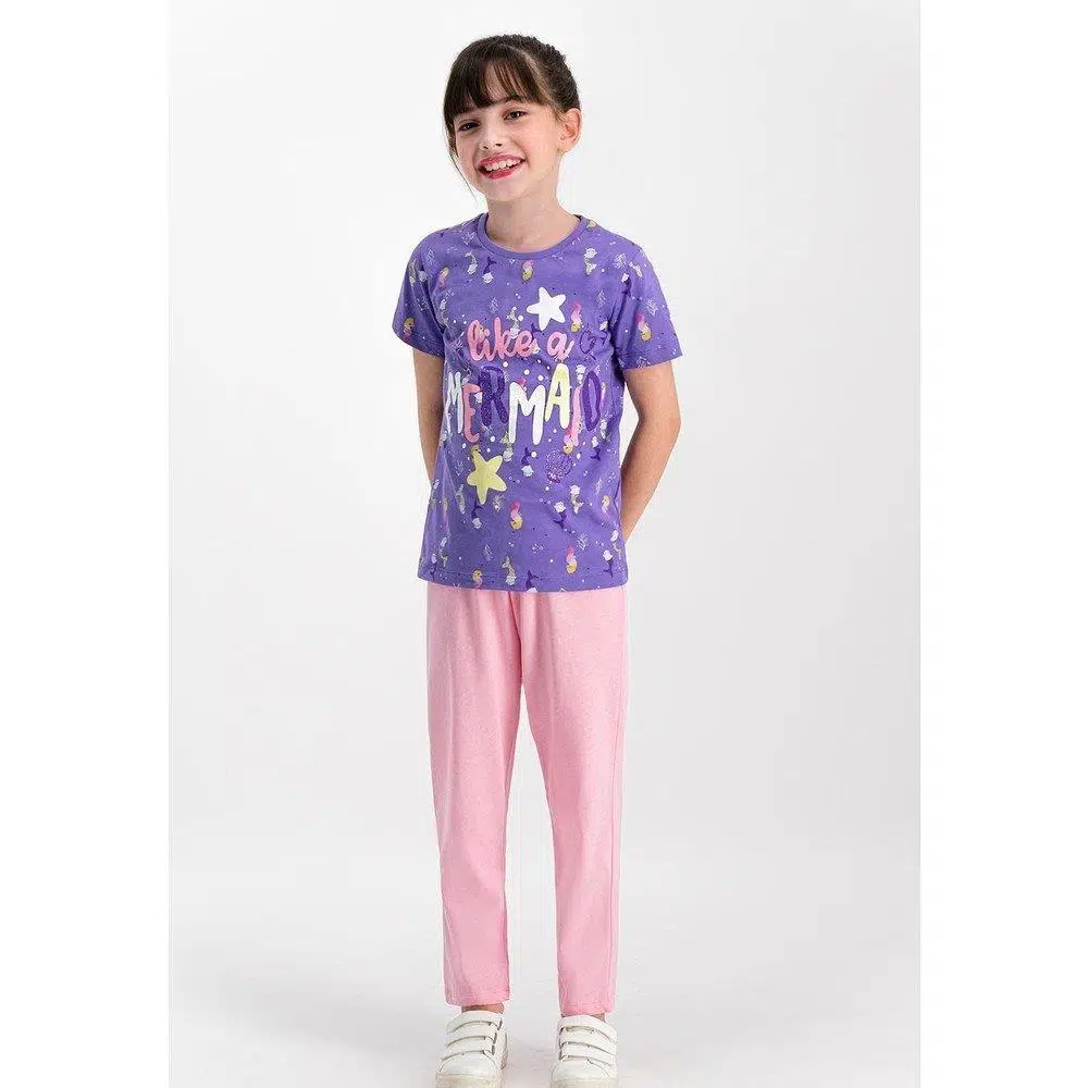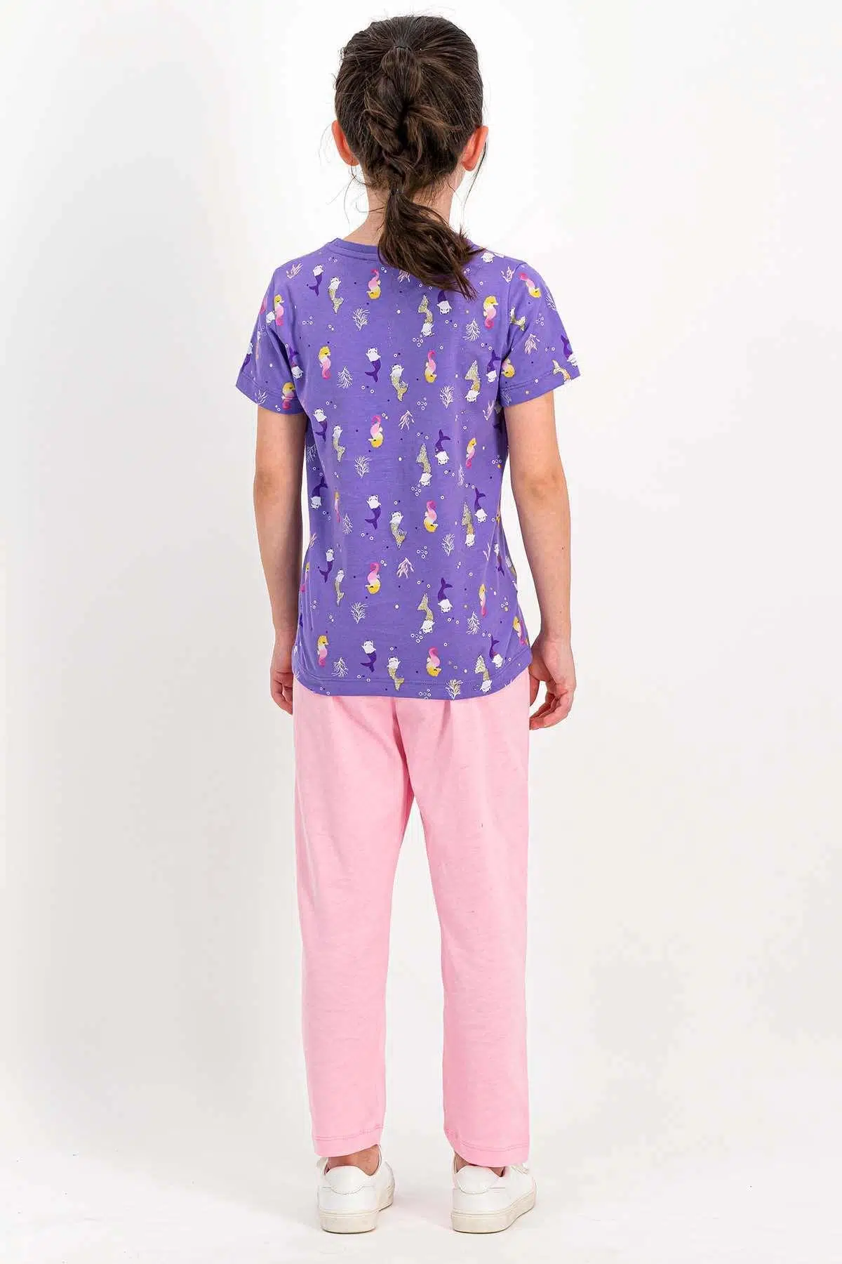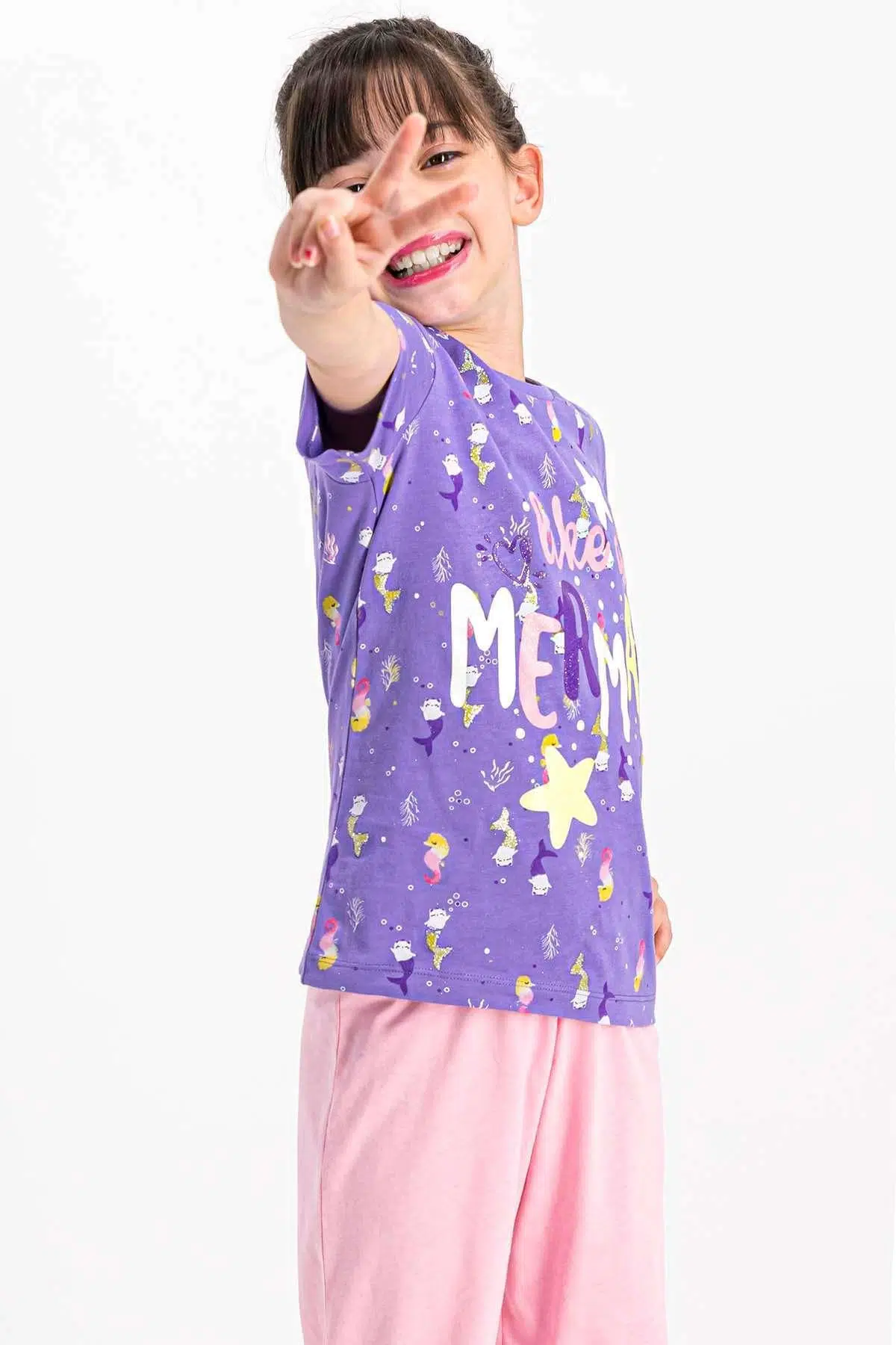 RolyPoly kız çocuk pijama takımı sevimli deniz kızı baskıları ile şık ve eğlenceli görünümdedir.