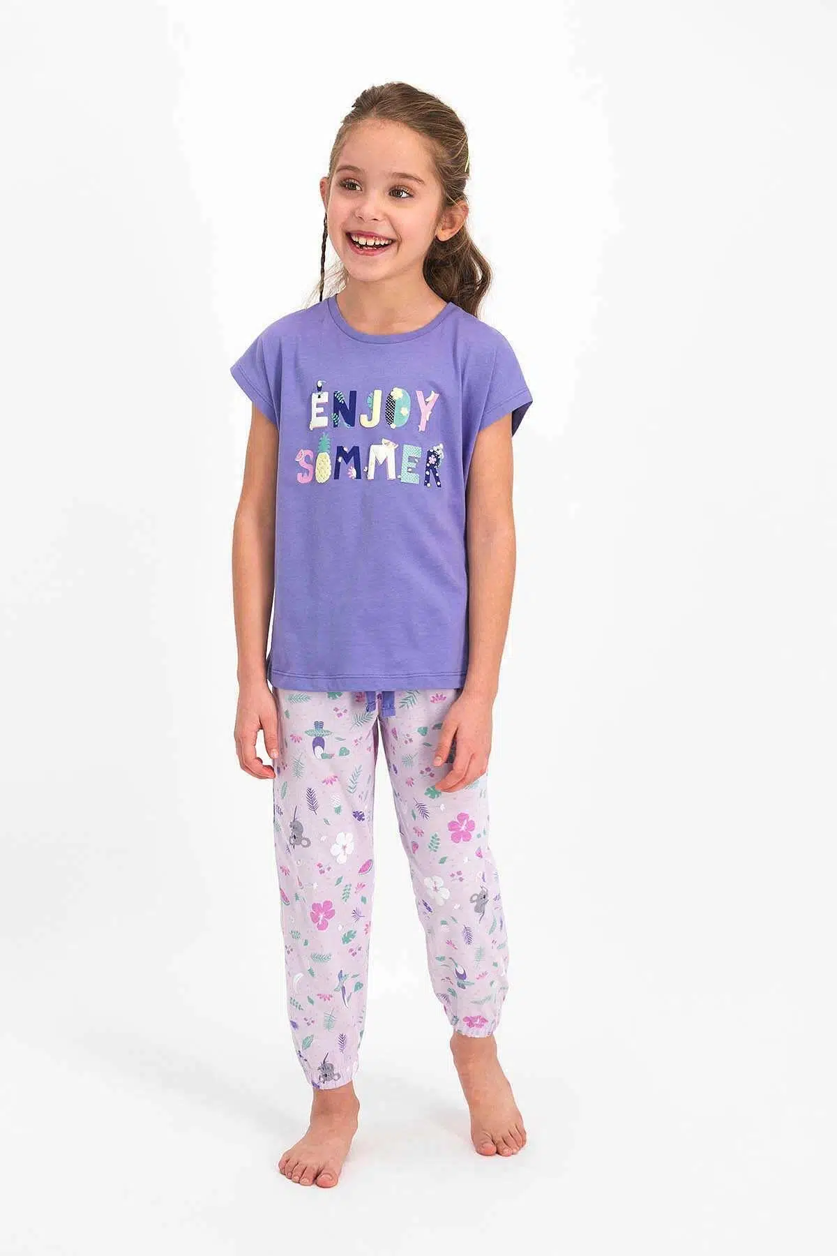 Roly Poly 2476 Kız Çocuk Enjoy Summer Mor Kısa Kol Pijama Takımı