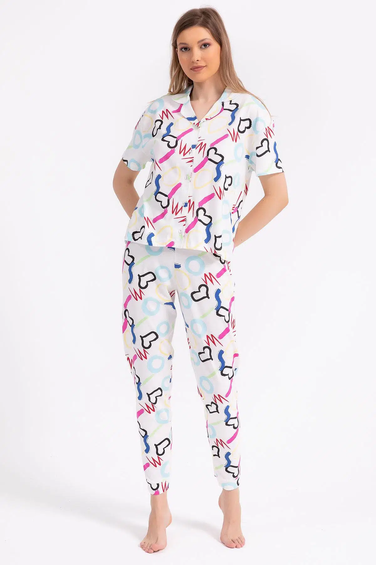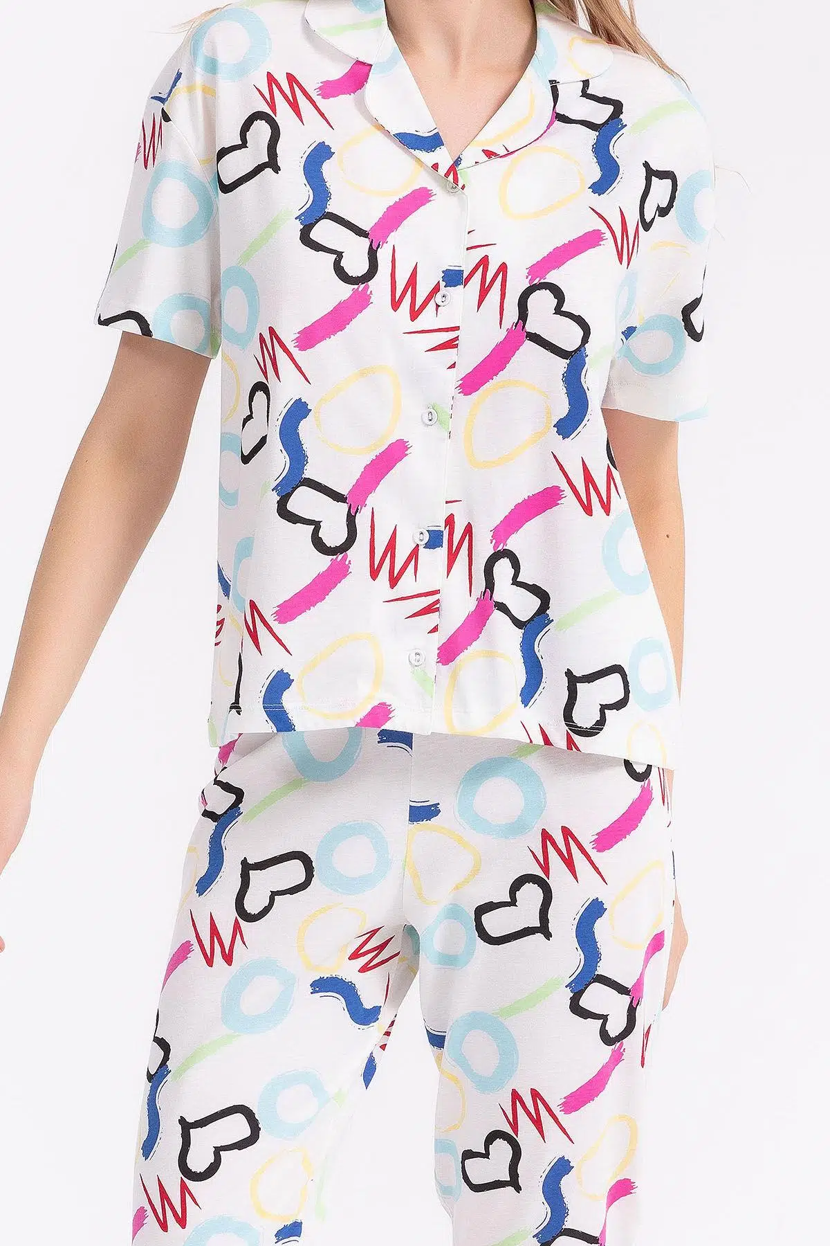 Roly Poly2786 Love Krem KadınGömlek Pijama Takımı