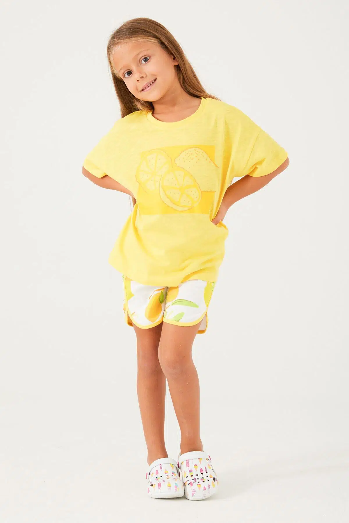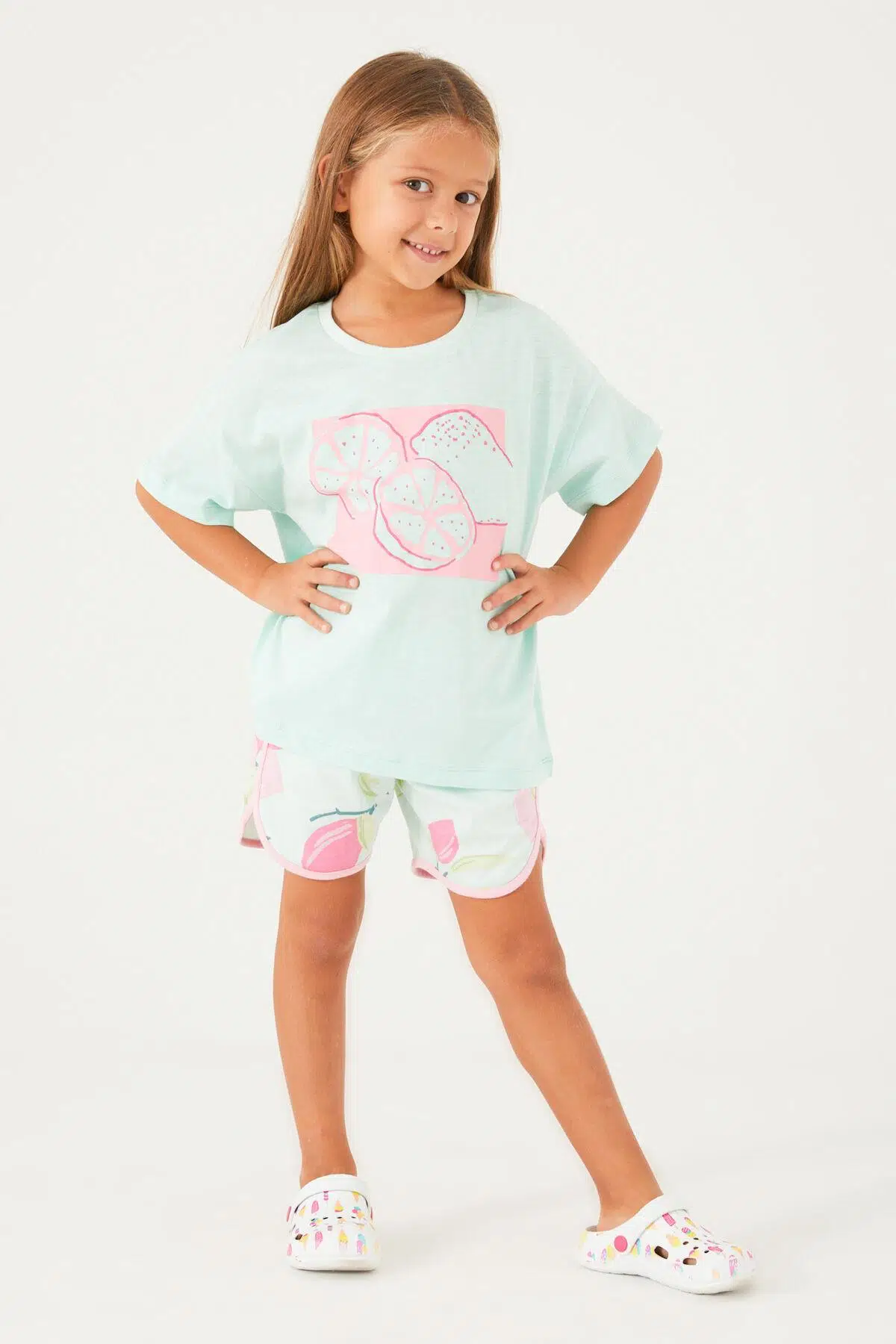 Roly Poly 3086 Garson Fruit Pattern Açık Yeşil Kız Çocuk Şort Takım