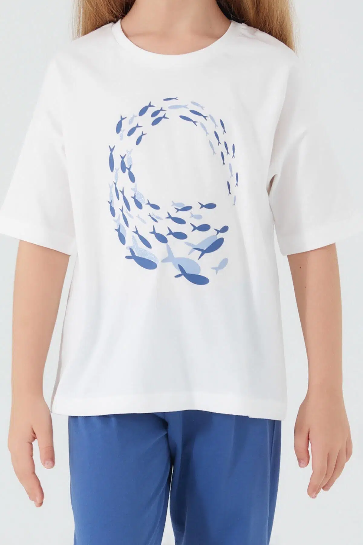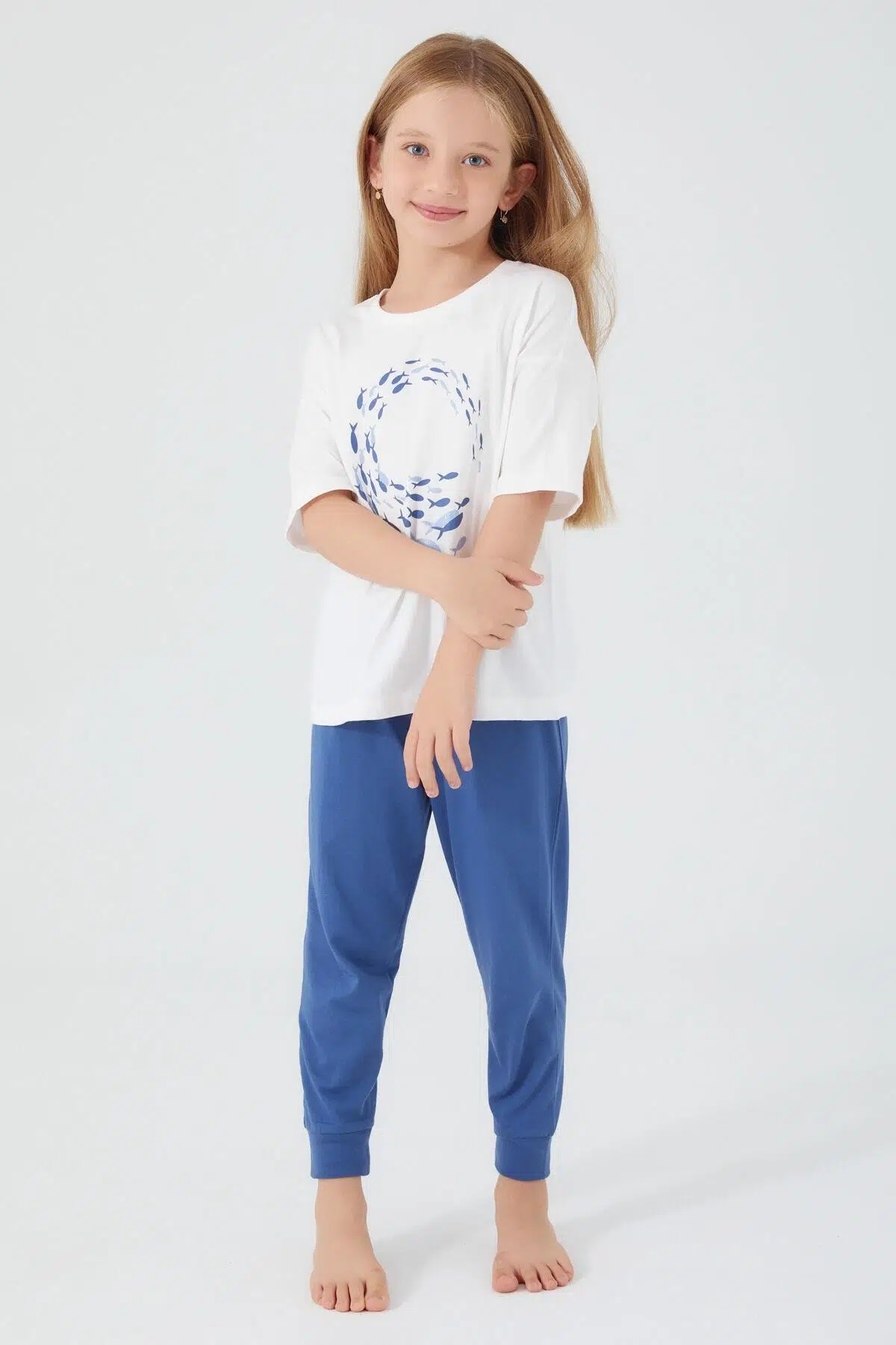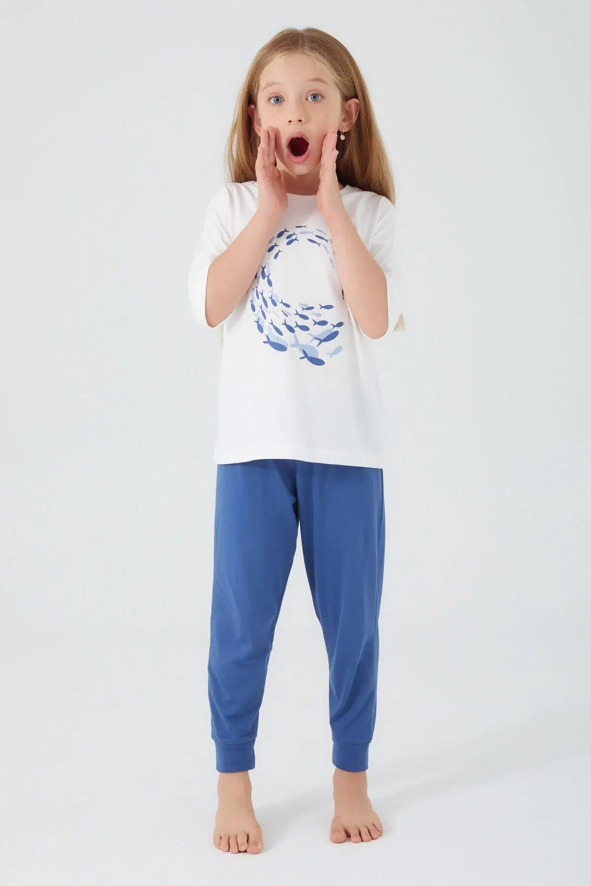 Roly Poly 3091 Garson Dolphin Detailed Krem Kız Çocuk Kısa Kol Pijama Takım