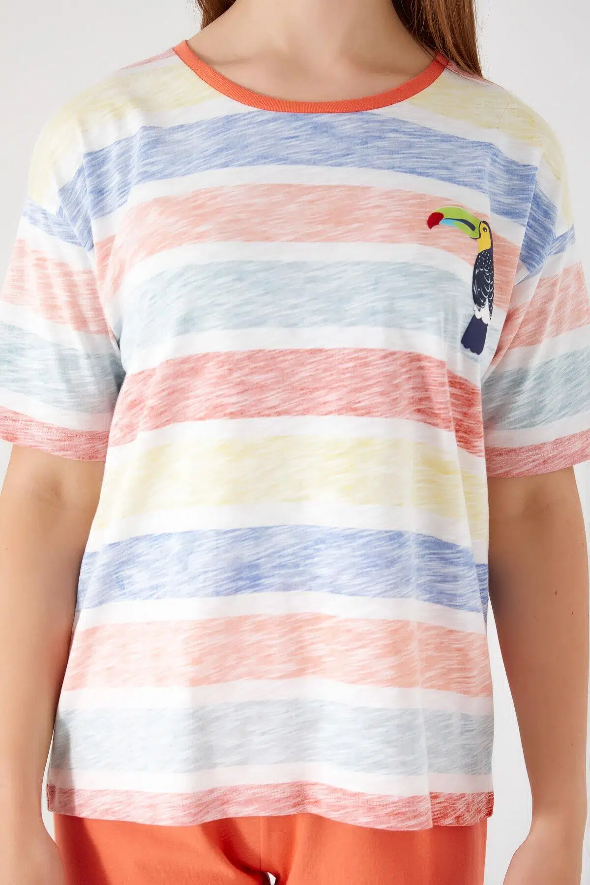 Roly Poly 3097 Sloping Krem Kadın Kısa Kol Pijama Takım