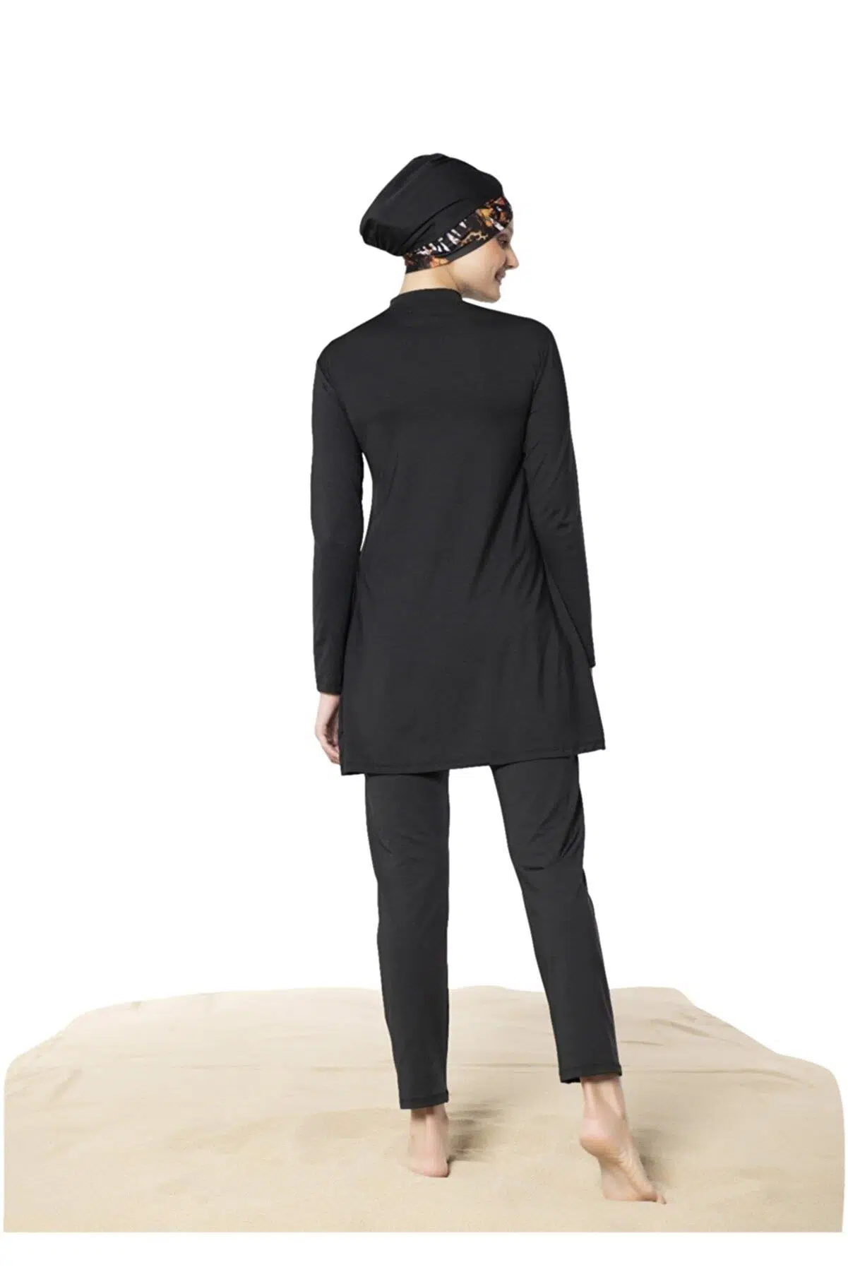 Ruko Maio 22126-3 Desenli Kol Biyeli Yarım Balıkçı Yaka Micro Lycra Tam Tesettür Mayo