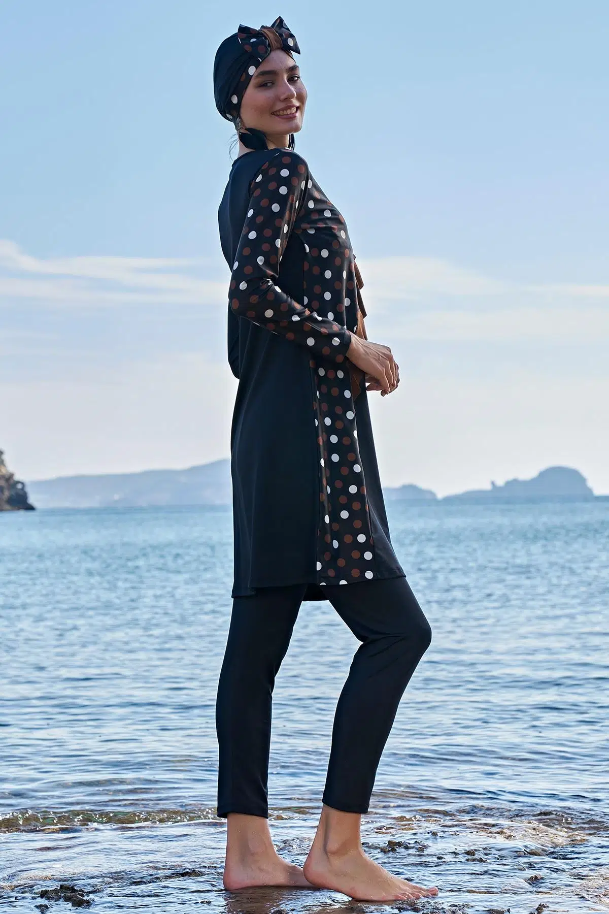 Ruko Maio 23107 Çapraz Puantiye Micro Lycra Kumaş Tam Tesettür Mayo