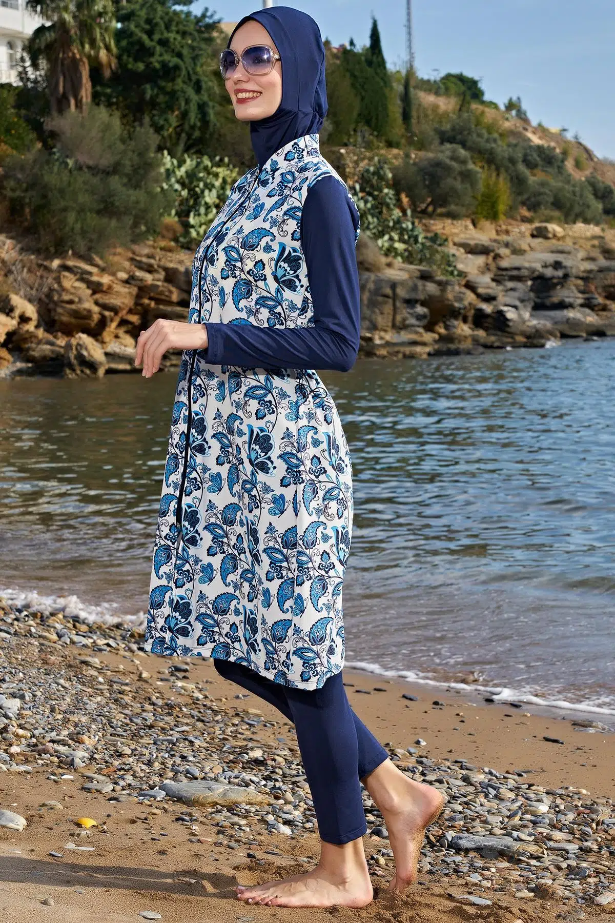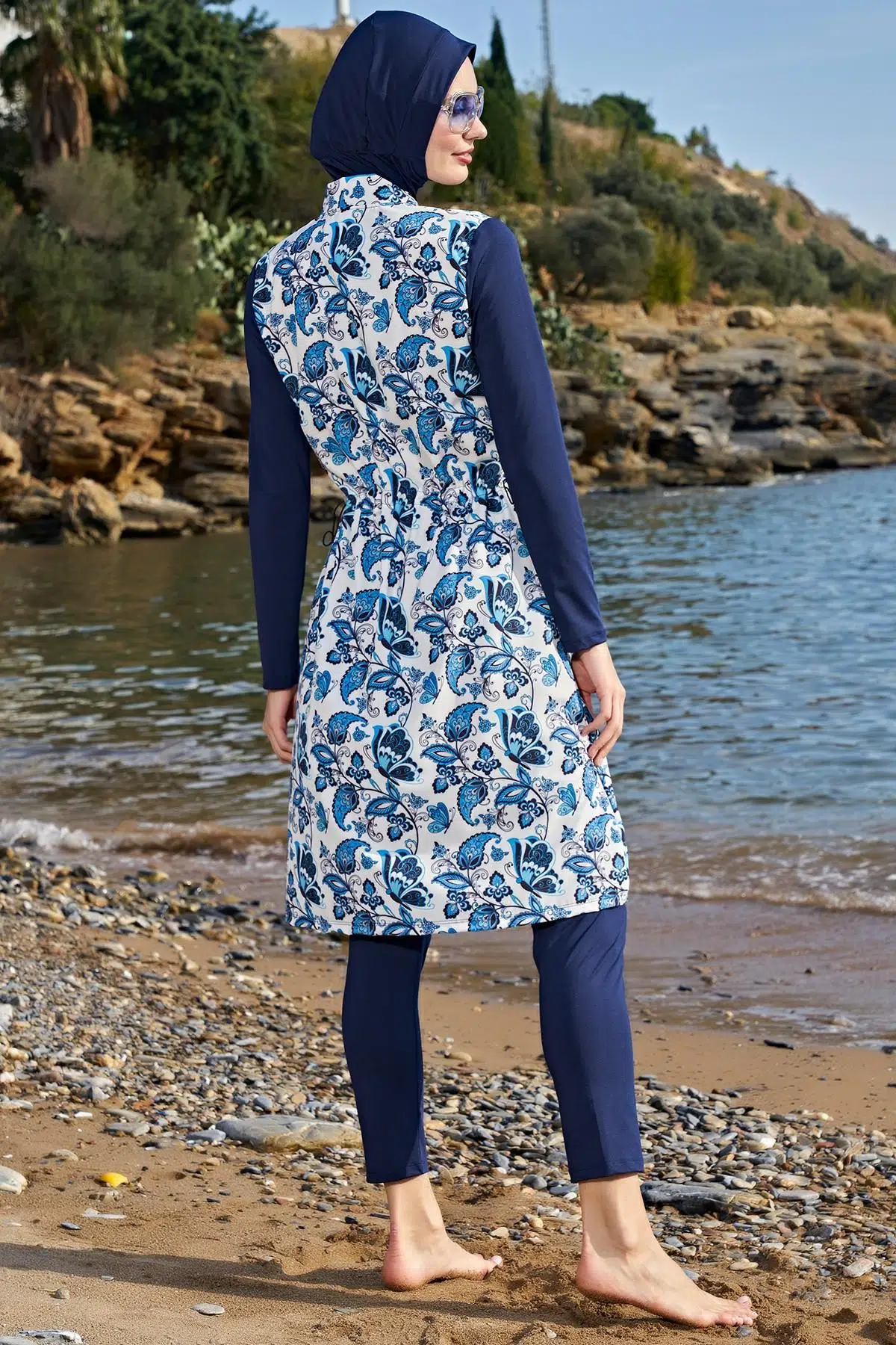 Ruko Maio 23117-1 Çini Desenli Dik Yaka Uzun Boy Tam Tesettür Mayo