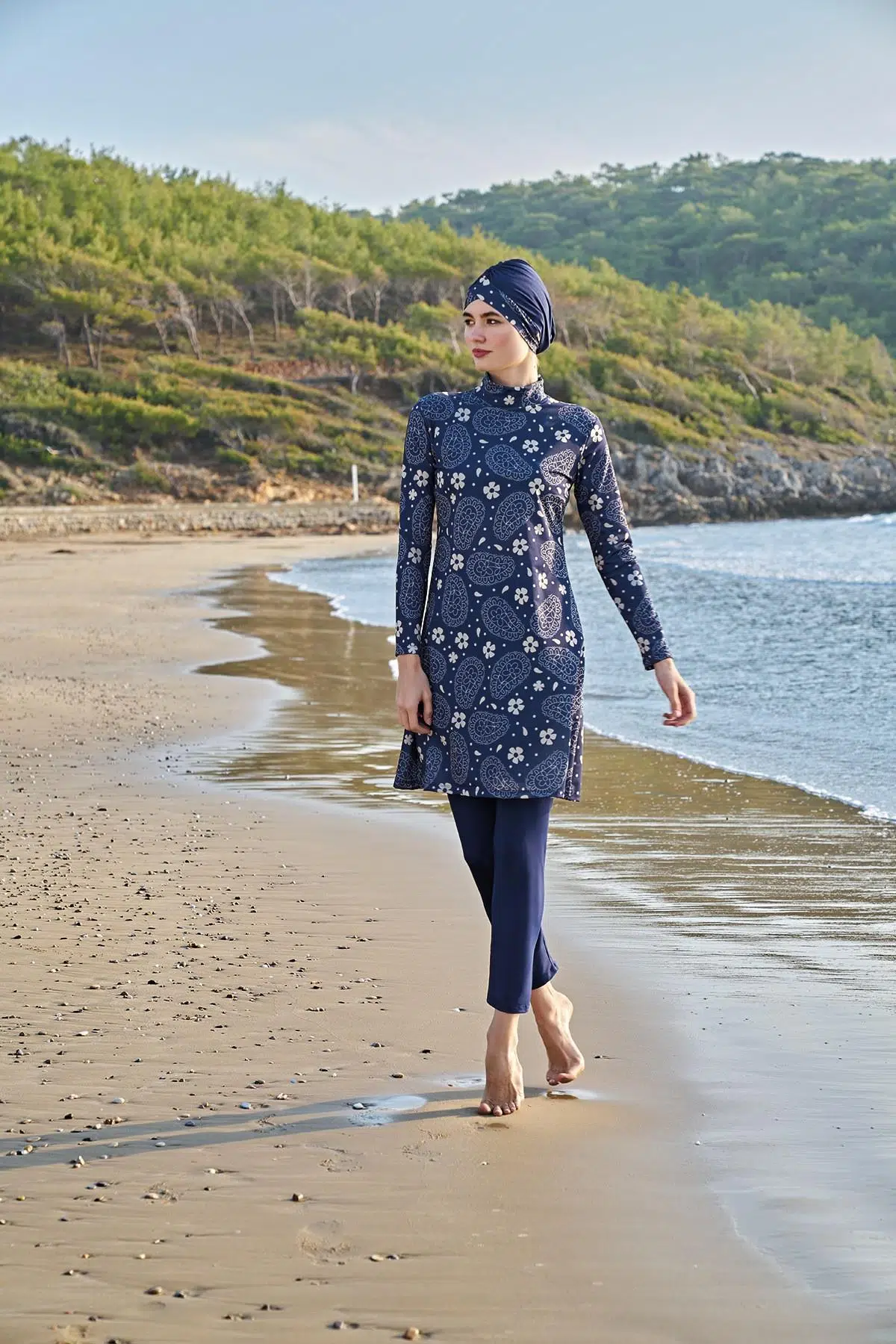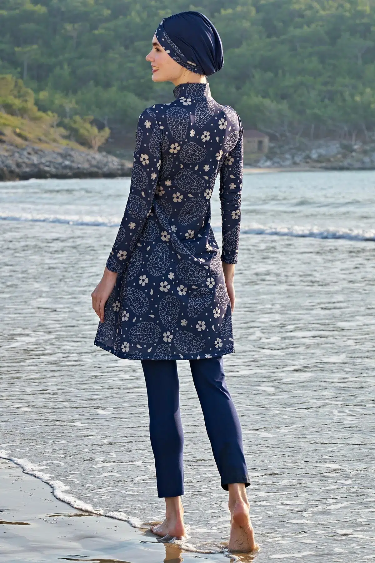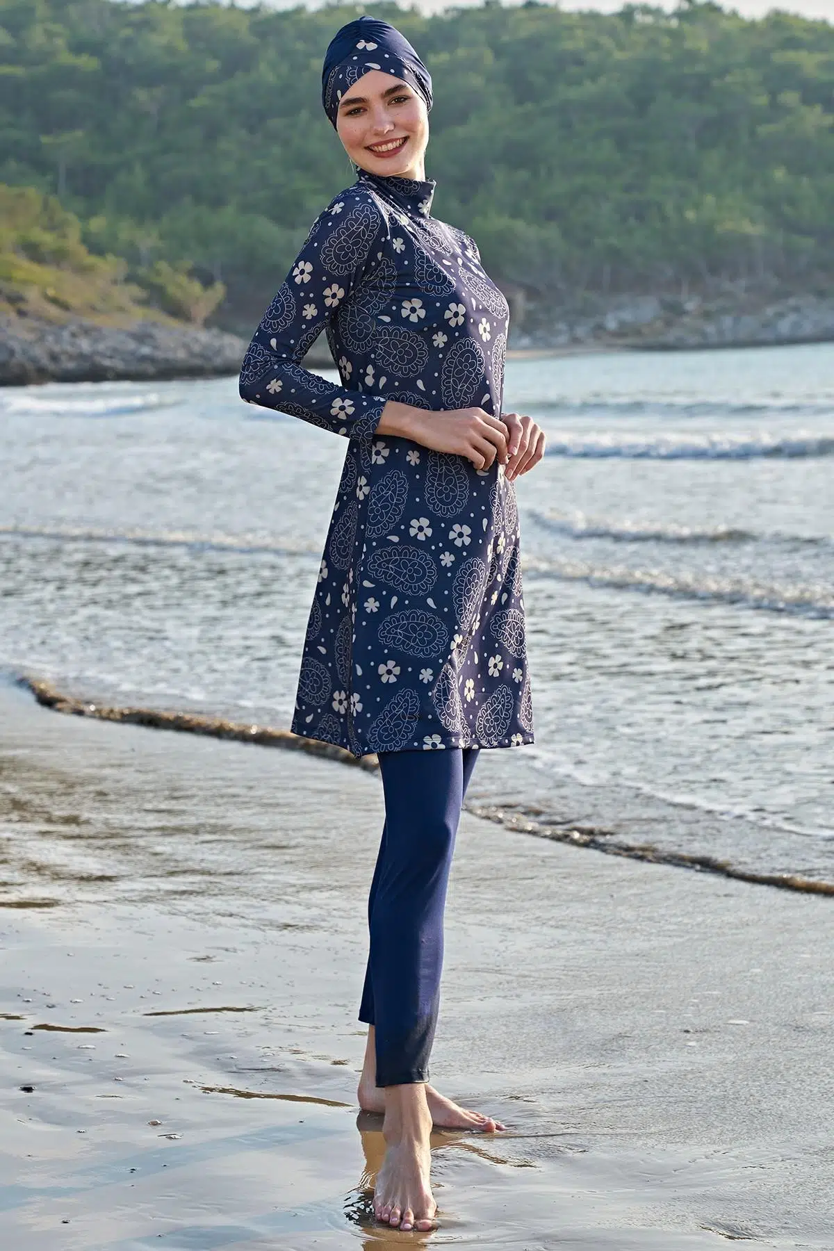Ruko Maio 23130-2 Büyük Beden Çift Eşarp ve Tesettür Boneli Balıkçı Yaka Tesettür Mayo