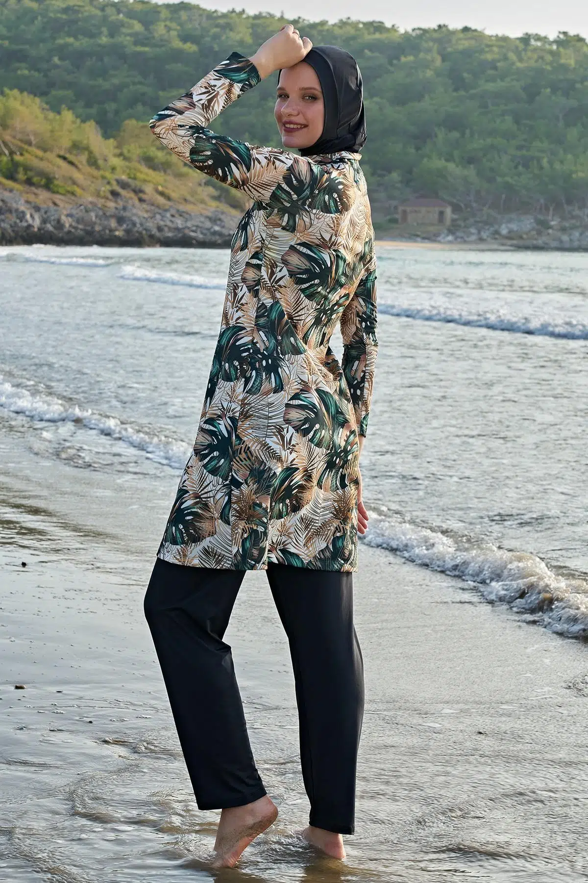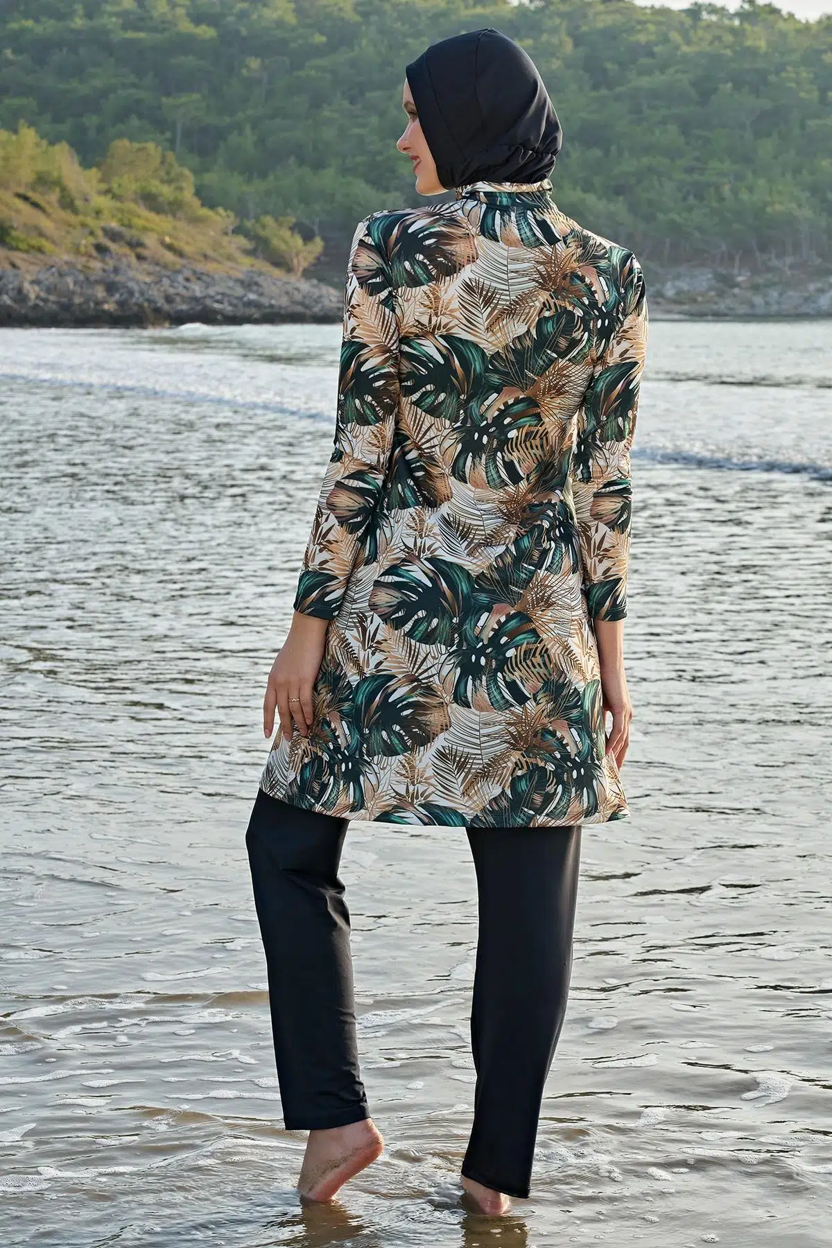 Ruko Maio 23130-3 Kadın Büyük Beden Çift Boneli Balıkçı Yaka Lycra Kumaş Tam Tesettür Mayo
