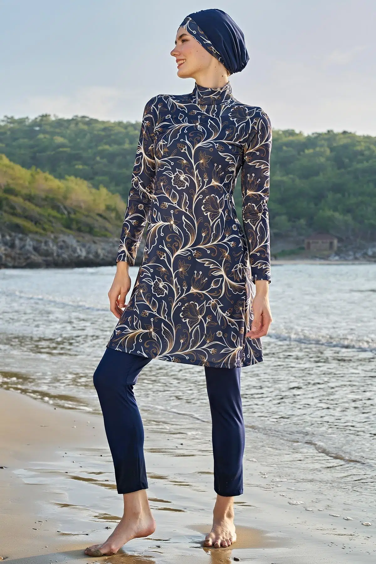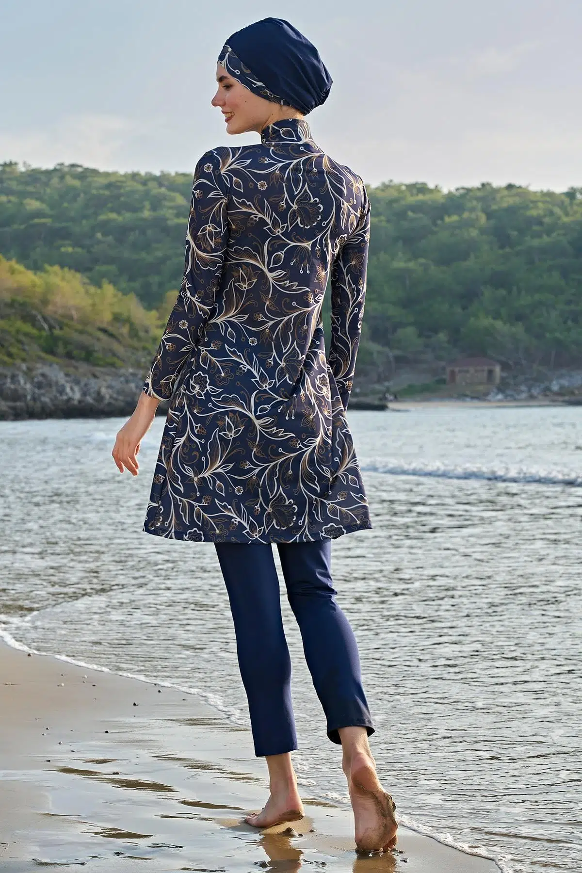 Ruko Maio 23130-4 Kadın Büyük Beden Çift Boneli Balıkçı Yaka Lycra Kumaş Tam Tesettür Mayo