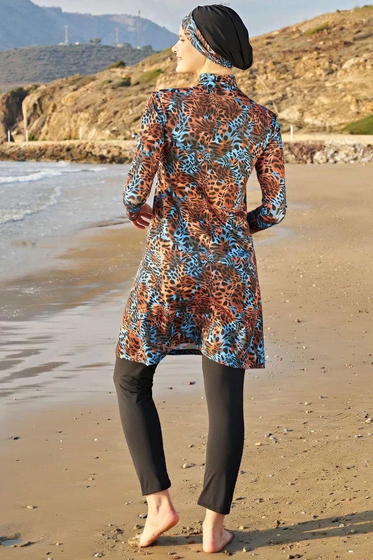 Ruko Maio 23130-5 Kadın Büyük Beden Çift Boneli Balıkçı Yaka Lycra Kumaş Tam Tesettür Mayo