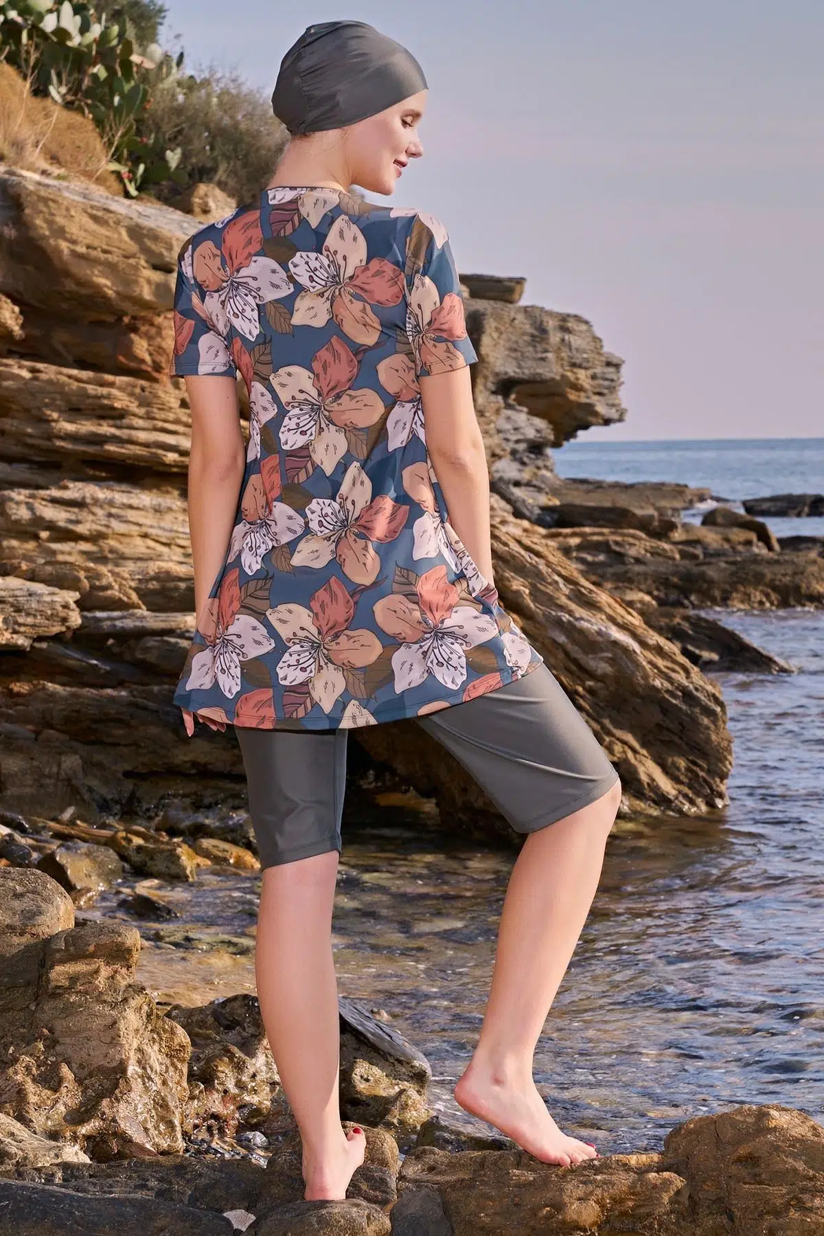 Ruko Maio 23134-4 Kadın Büyük Beden Yarım Kol Lycra Kumaş Yarı Tesettür Mayo