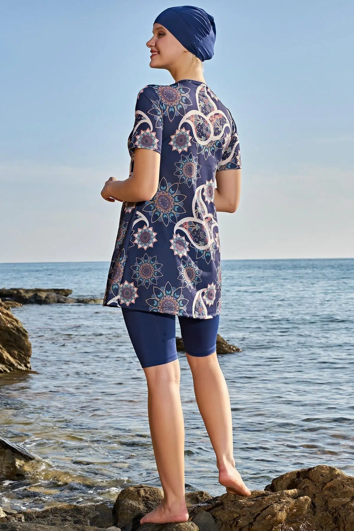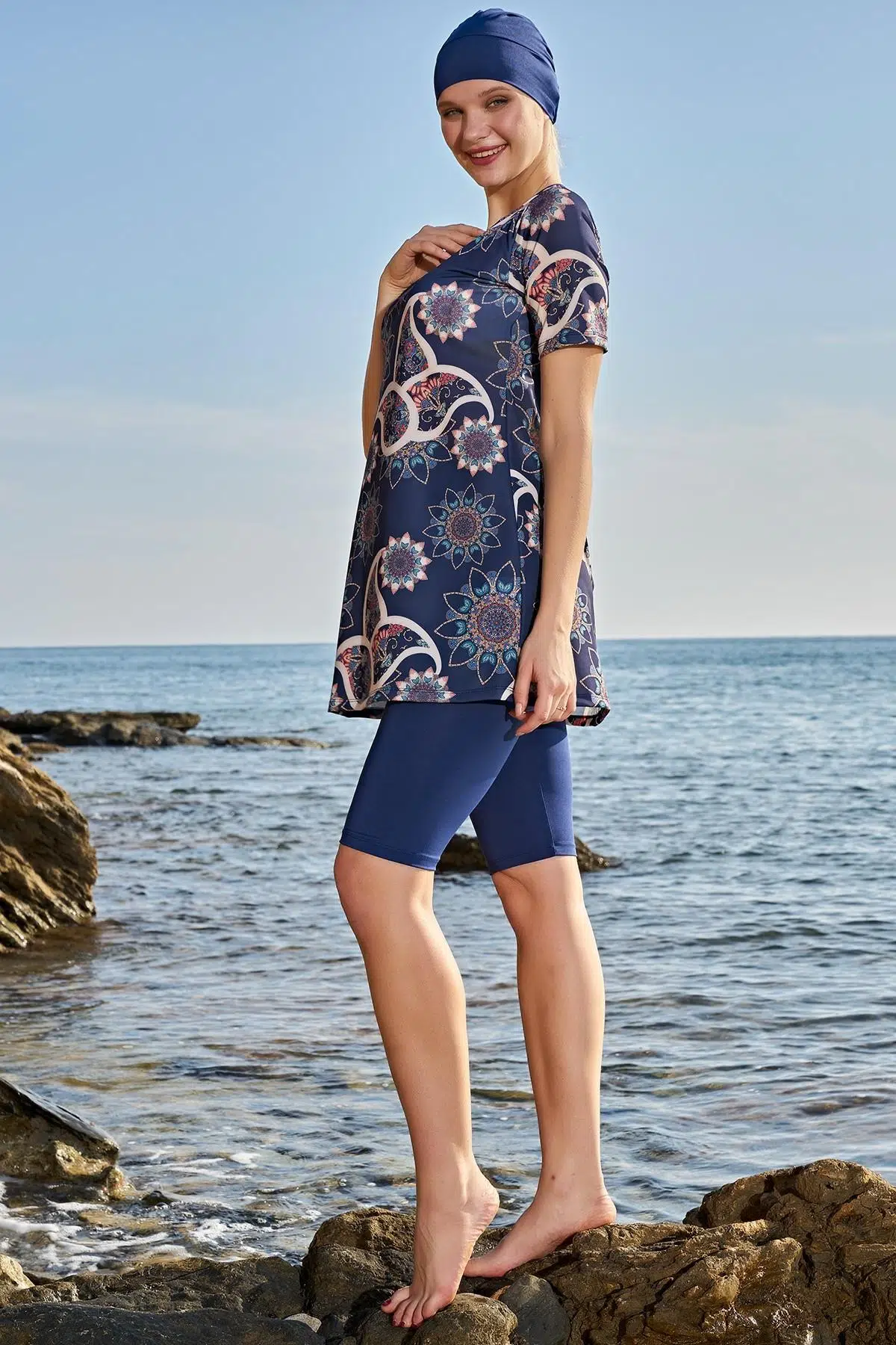 Ruko Maio 23134-6 Kadın Büyük Beden Yarım Kol Lycra Kumaş Yarı Tesettür Mayo