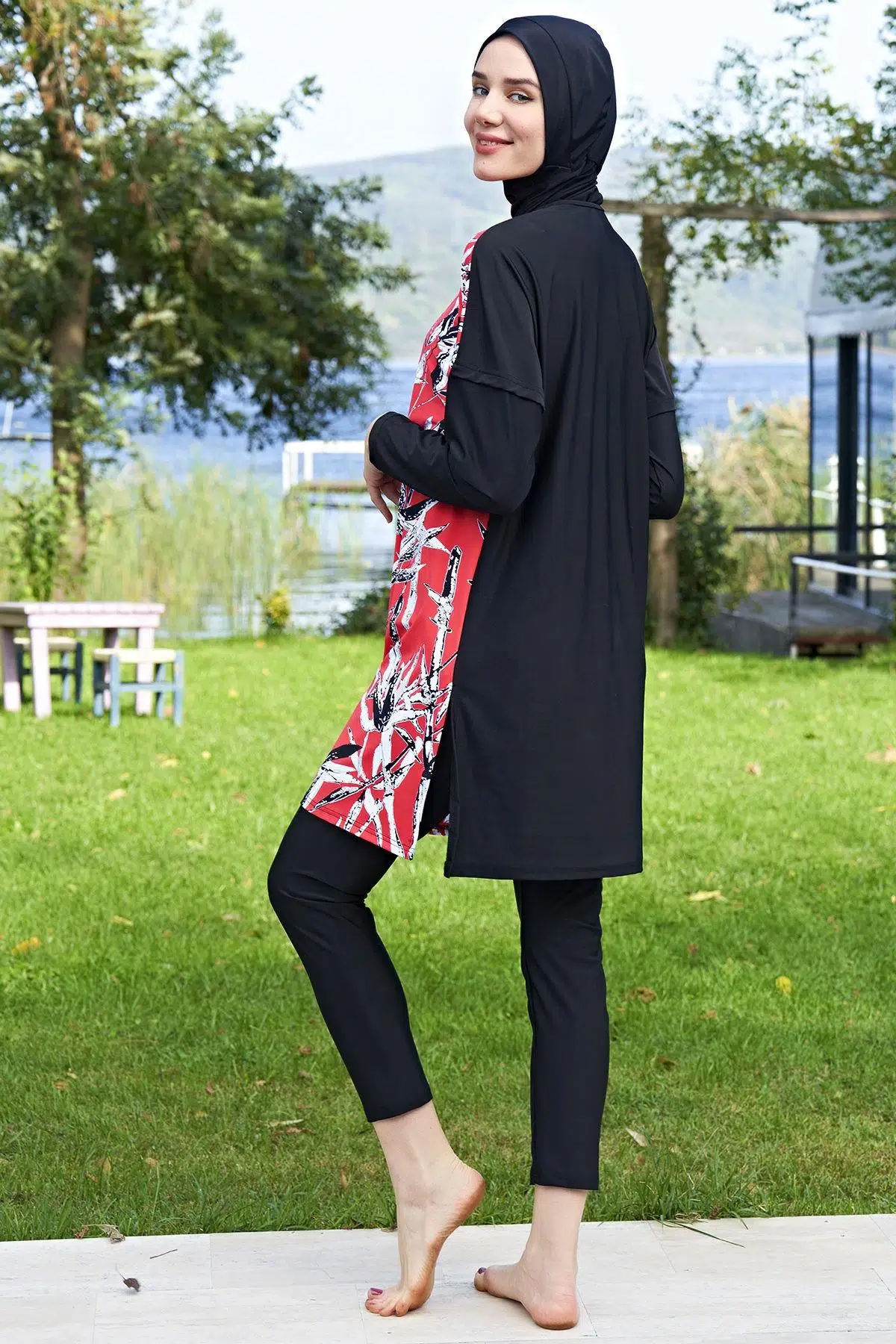 Ruko Maio 2411-2 Oversize Desenli Likralı Su İtici Ve Çabuk Kuruyan Kumaş Tesettür Mayo
