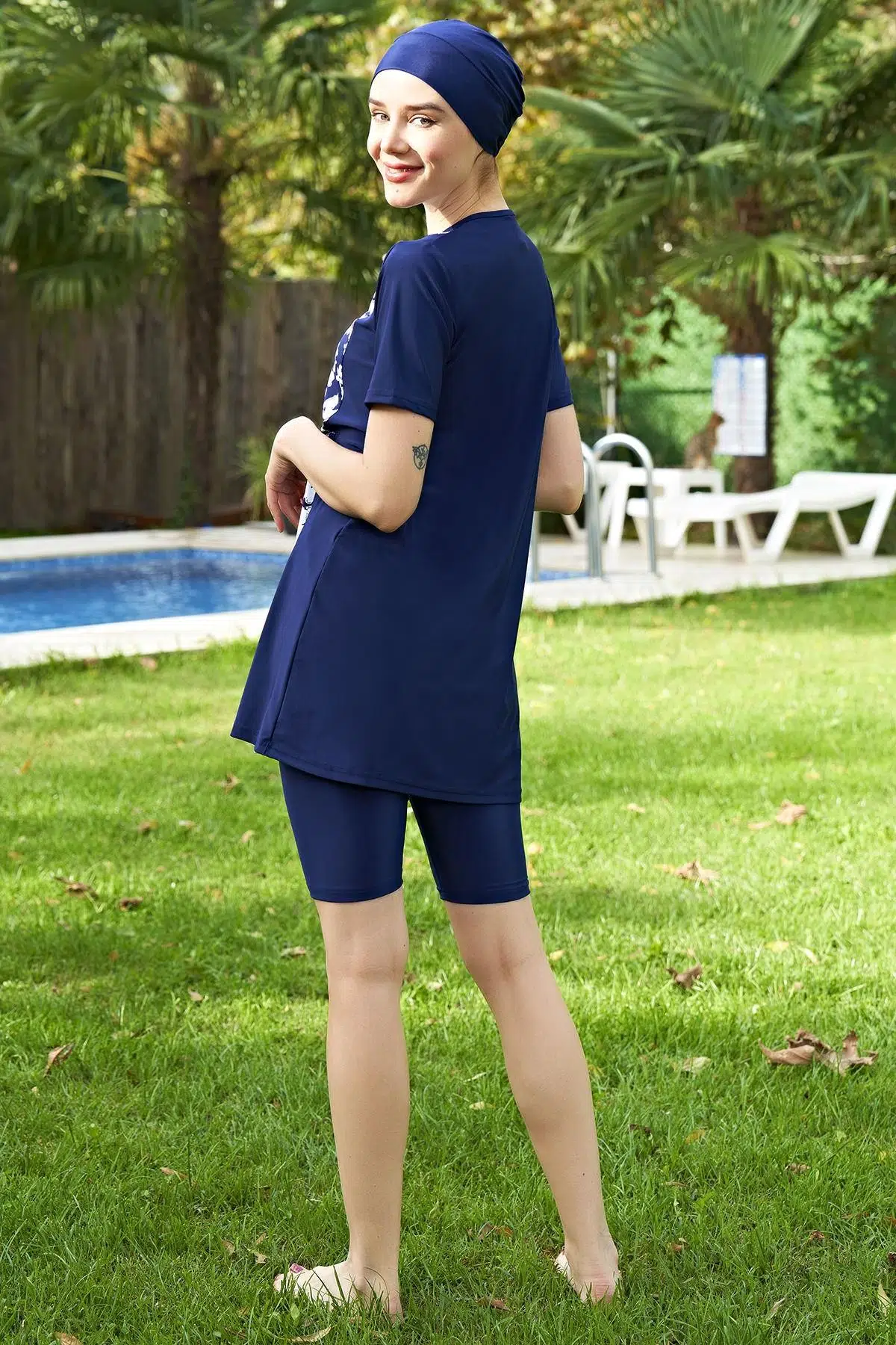 Ruko Maio 2426-3 Fermuarlı Yarım Kol Likralı Su itici Ve Çabuk Kuruyan Kumaş Tesettür Mayo