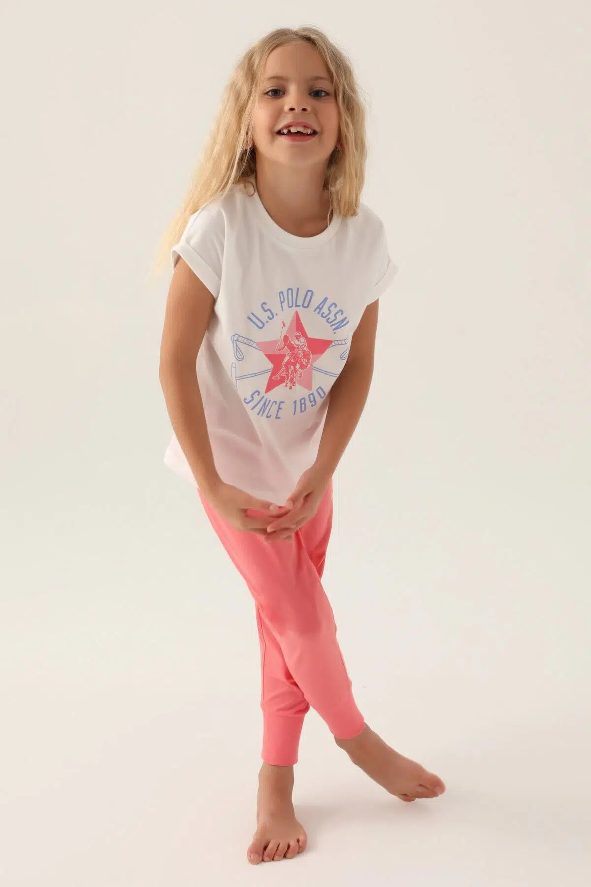 U.S. Polo Assn. 1838 Lisanslı Starry Krem Kız Çocuk Pijama Takımı