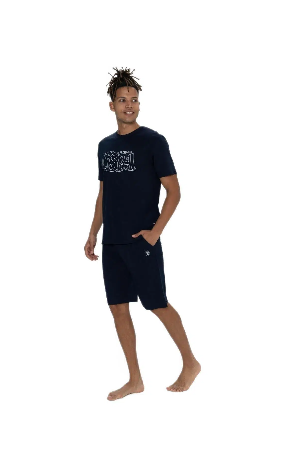 U.S. Polo Assn. 18903 Erkek Bisiklet Yaka Kısa Kol 3'lü Şortlu-Uzun Pijama Takım