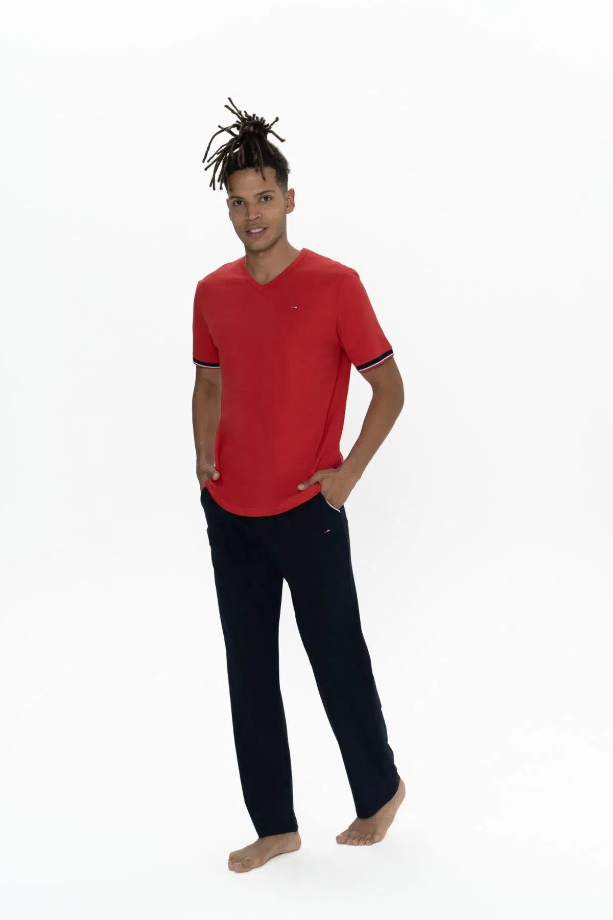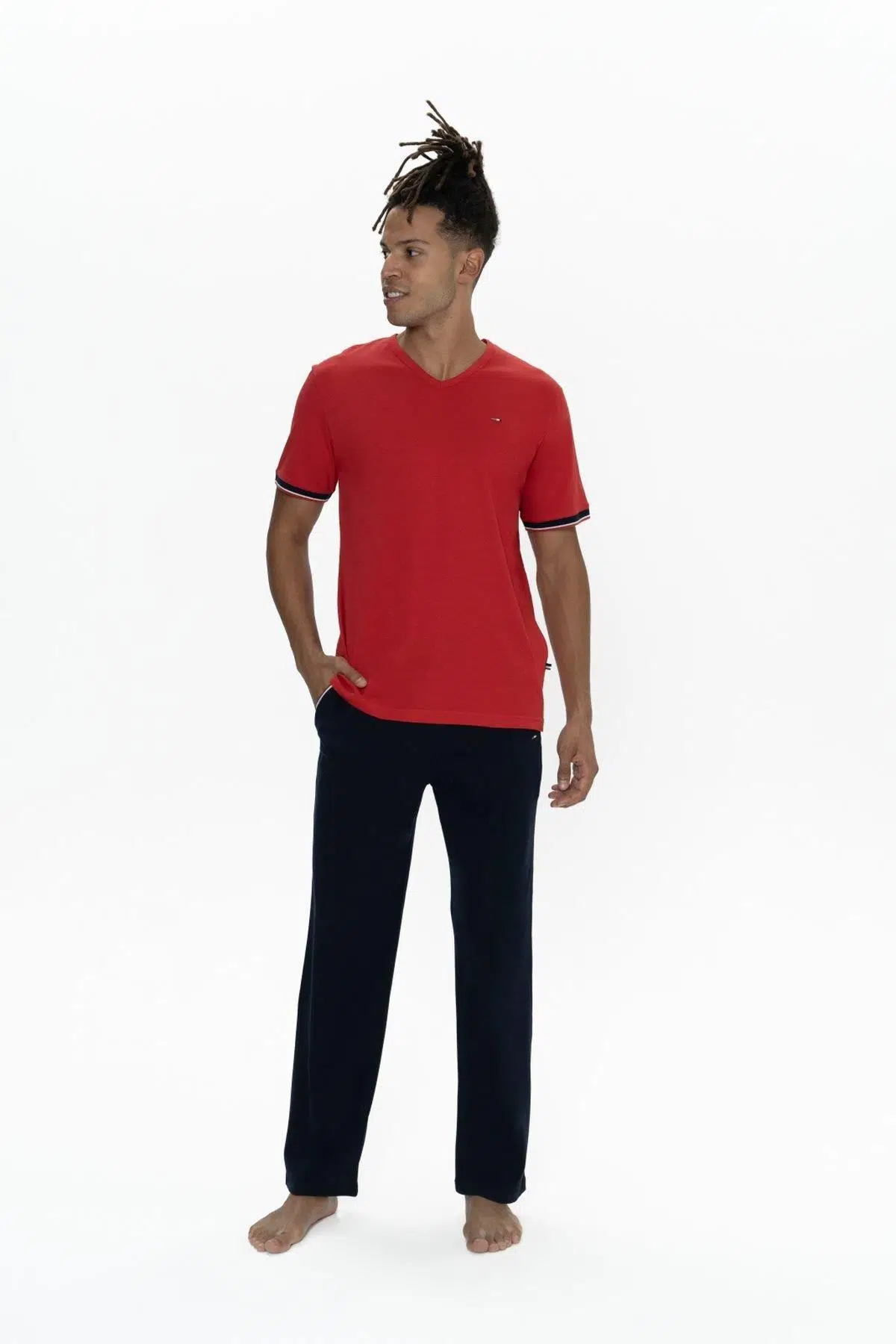 U.S. Polo Assn. 18896 Büyük Beden Erkek Kırmızı Yarım Kollu V Yaka Pijama Takım