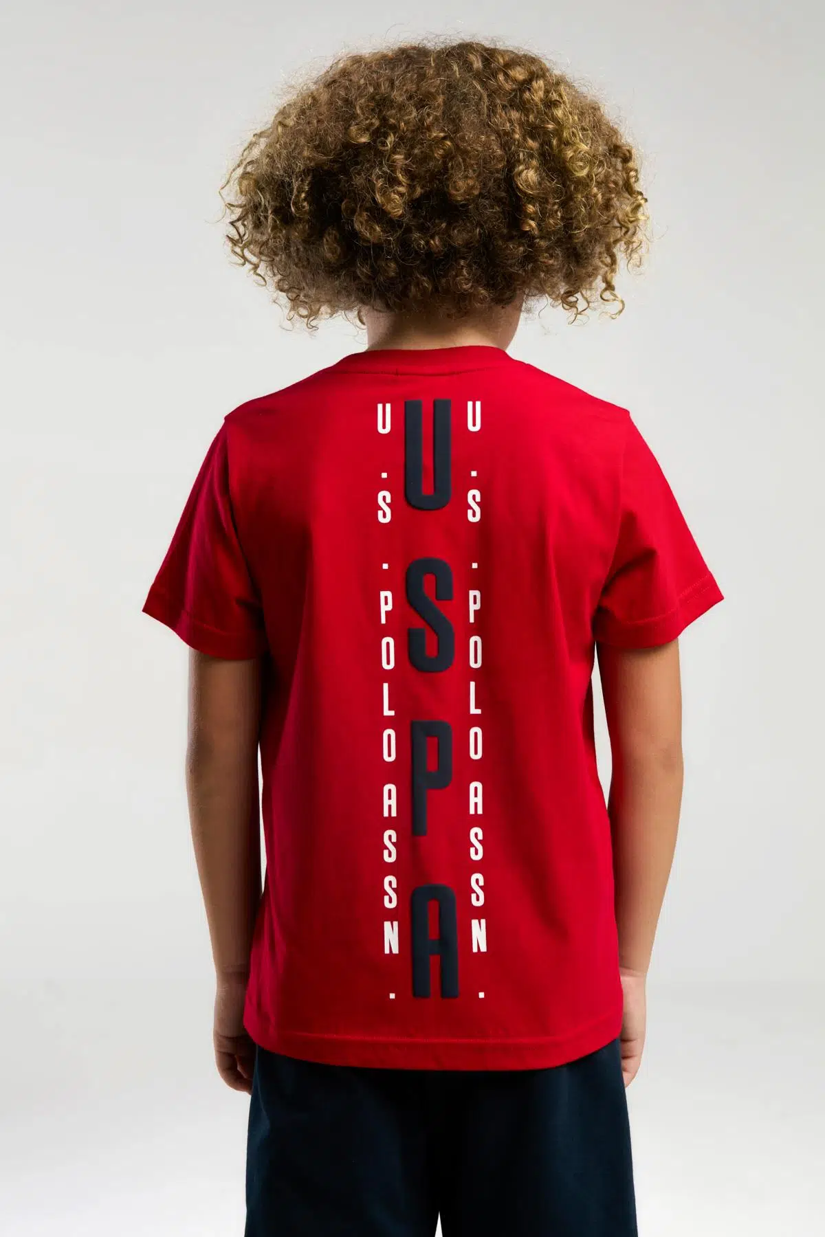U.S. Polo Assn. 2007 Erkek Çocuk Sırt Yazılı Kırmızı Şortlu Bermuda Pijama Takım