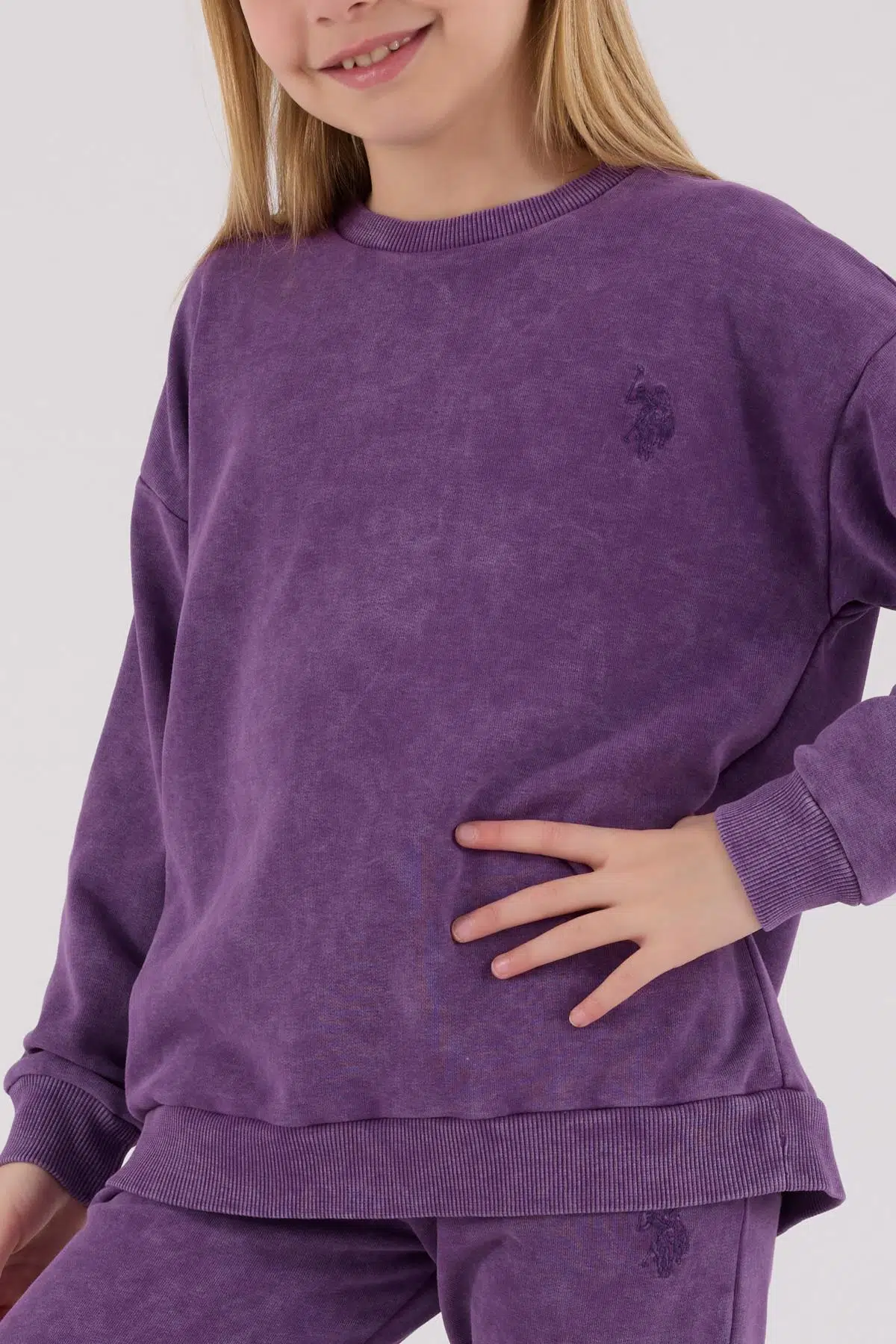 U.S Polo Assn. 2302 Garson Kız Çocuk Mor Kalın 3 İplik Kumaş Uzun Kollu Lastikli Eşofman Takım